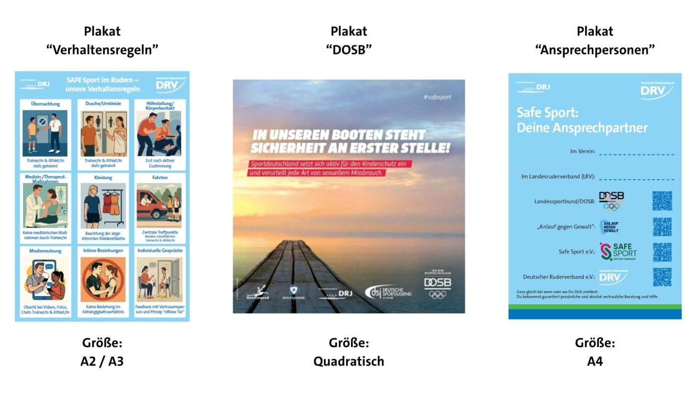 Dabei steht euch das Plakat "Verhaltensregeln", das Plakat vom DOSB und das Plakat "Ansprechpersonen für Safe Sport" zur Verfügung zu bestellen. Die Bestellung ist für DRV-Vereine kostenlos. Die Plakate seht ihr hier: