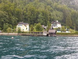 Das Bootshaus des Ruderclubs Wolfgangsee in St. Gilgen liegt an einem öffentlichen Strand. Der Steg wird daher gerne auch von Sonnenanbetern genutzt, die vor dem Anlegen der Boote mehrfach, aber höflich gebeten werden müssen, den Steg frei zu machen.