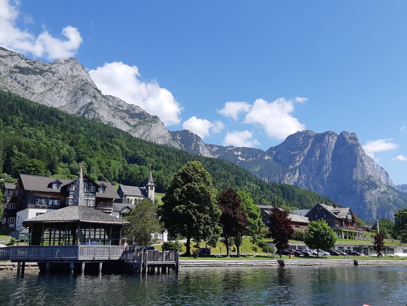 Auf einer Seite des Sees kommt steil der Wald bis ans Ufer hinunter und strahlt Kühle aus. Rundherum ragt das Hochgebirge auf. Der Grundlsee ist dunkler als Wolfgang- und Mondsee, ist auch 68 m tief und sehr klar. Stattliche alte Villen und viele Bootsschuppen säumen das Ufer.