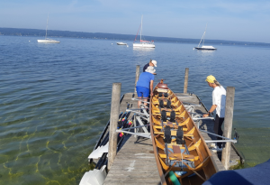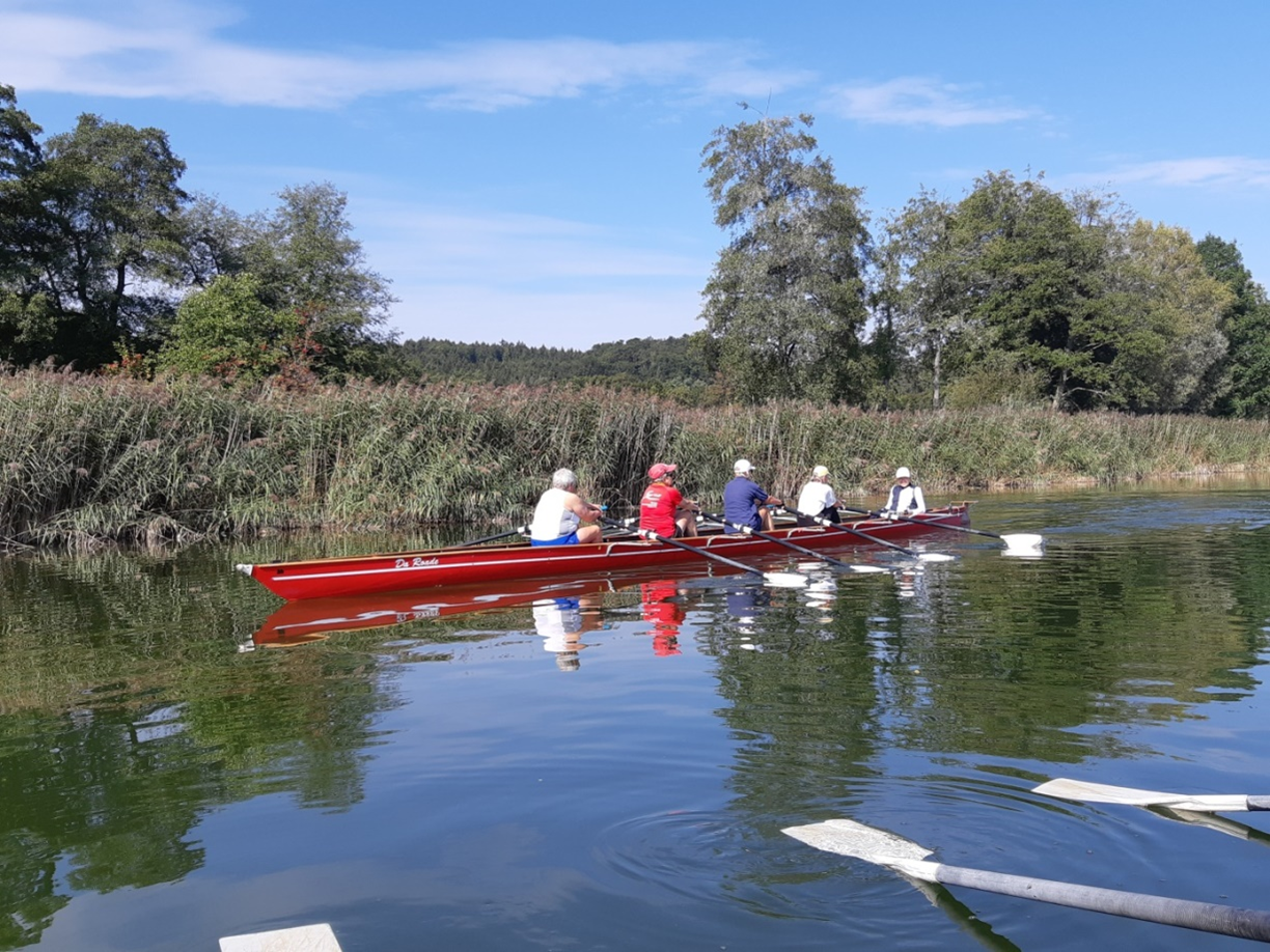 Die Alpen im Hintergrund (mal mehr oder weniger sichtbar), viele öffentliche Badestellen, jeden Tag Sonnenschein pur, dazu gelegentlich ein sanfter, für etwas Kühlung sorgender Wind hinterließen bei den zehn Ruderinnen einen unvergesslichen Eindruck. Am Ende eines Rudertages stand Schwimmen oder Baden im jeweiligen See auf dem Programm.