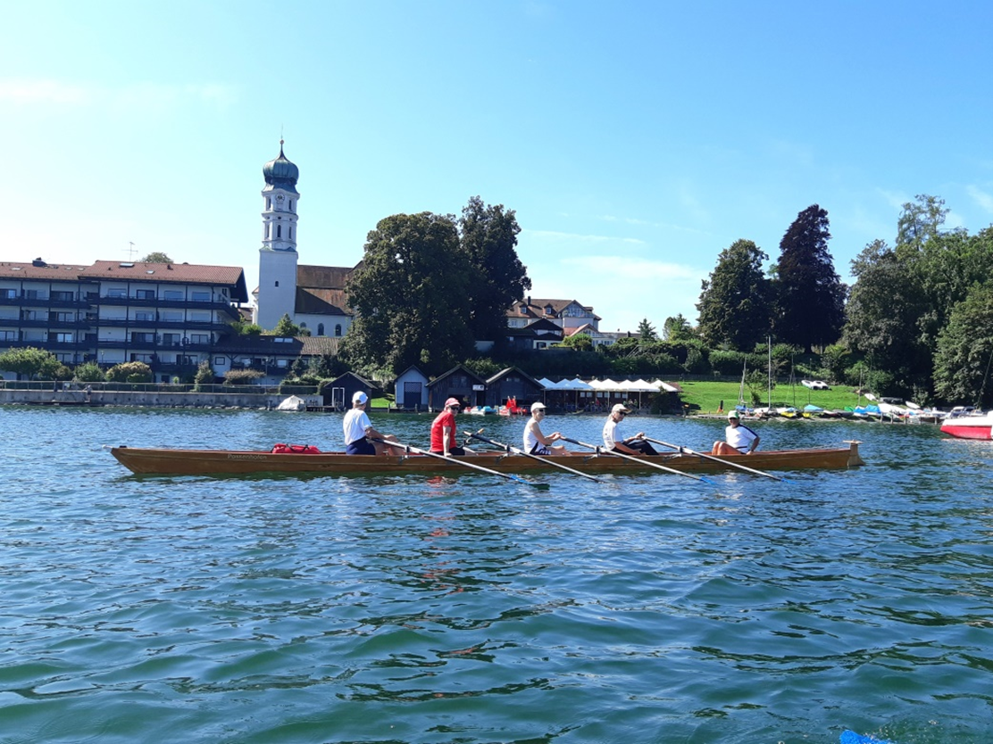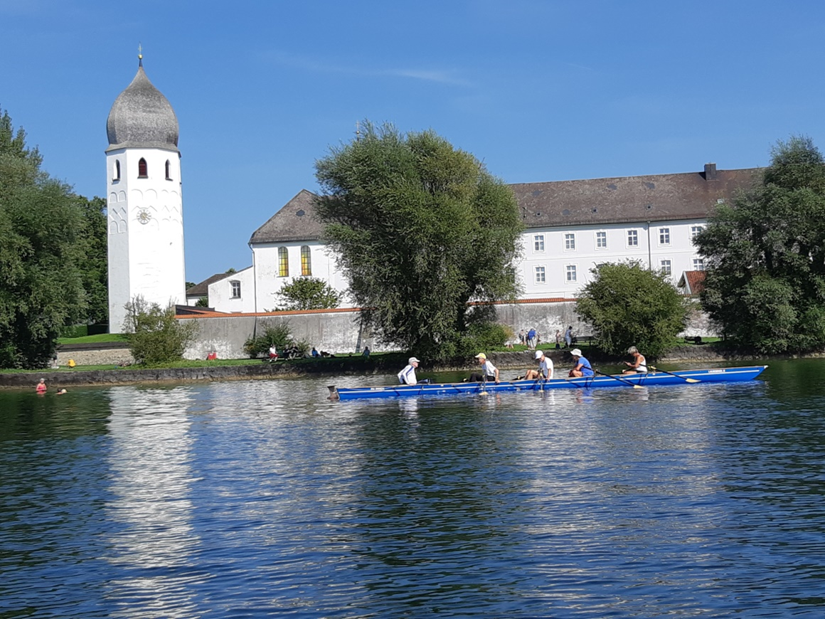 Die DRV-Damenwanderfahrt führte in diesem Jahr nach Bayern. Zehn Ruderinnen aus ganz Deutschland erkundeten die bayerischen Seen, an denen es Rudervereine gibt, bei denen zwei C-Vierer mit Handsteuerung ausgeliehen werden konnten. In allen Vereinen wurden die Ruderinnen sehr freundlich empfangen und in die Besonderheiten des jeweiligen Sees (z.B. Untiefen, Naturschutzzonen u.ä.) eingewiesen. Die ihnen anvertrauten Boote, die alle in sehr gutem Zustand waren, wurden nach jeder Ausfahrt sorgfältig geputzt und wieder an ihren Platz zurückgebracht. Folgende Seen mit zum Teil enger Verbindung zu König Ludwig II. (Schloss Herrenchiemsee, Schloss Neuschwanstein, Votivkapelle am Starnberger See) standen auf dem achttägigen Programm.