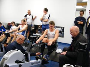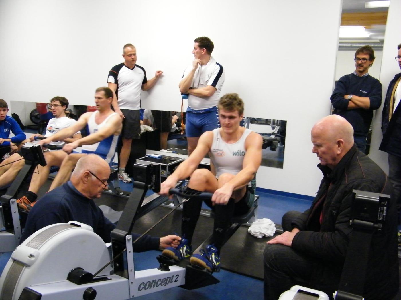Hannes Ocik zog in einem beeindruckend ruhigen und gleichmäßig kräftigen Modus die 20 Kilometer durch. Bei einer Schlagzahl von 22 pro Minute. Ab und zu blitzte aber auf, wieviele Kraft er bei anderer Gelegenheit aufbringen kann. Bei kurzen Zwischenspurts schien sein Trainingsgerät fast abzuheben. Für Hannes war wichtig, dass sich seine Vereinskameraden ein neues Trainingsgerät ehrlich erkämpfen - und für die SRG-Ruderer war es ein besonderes Erlebnis, gegen einen Olympia-Ruderer anzutreten.