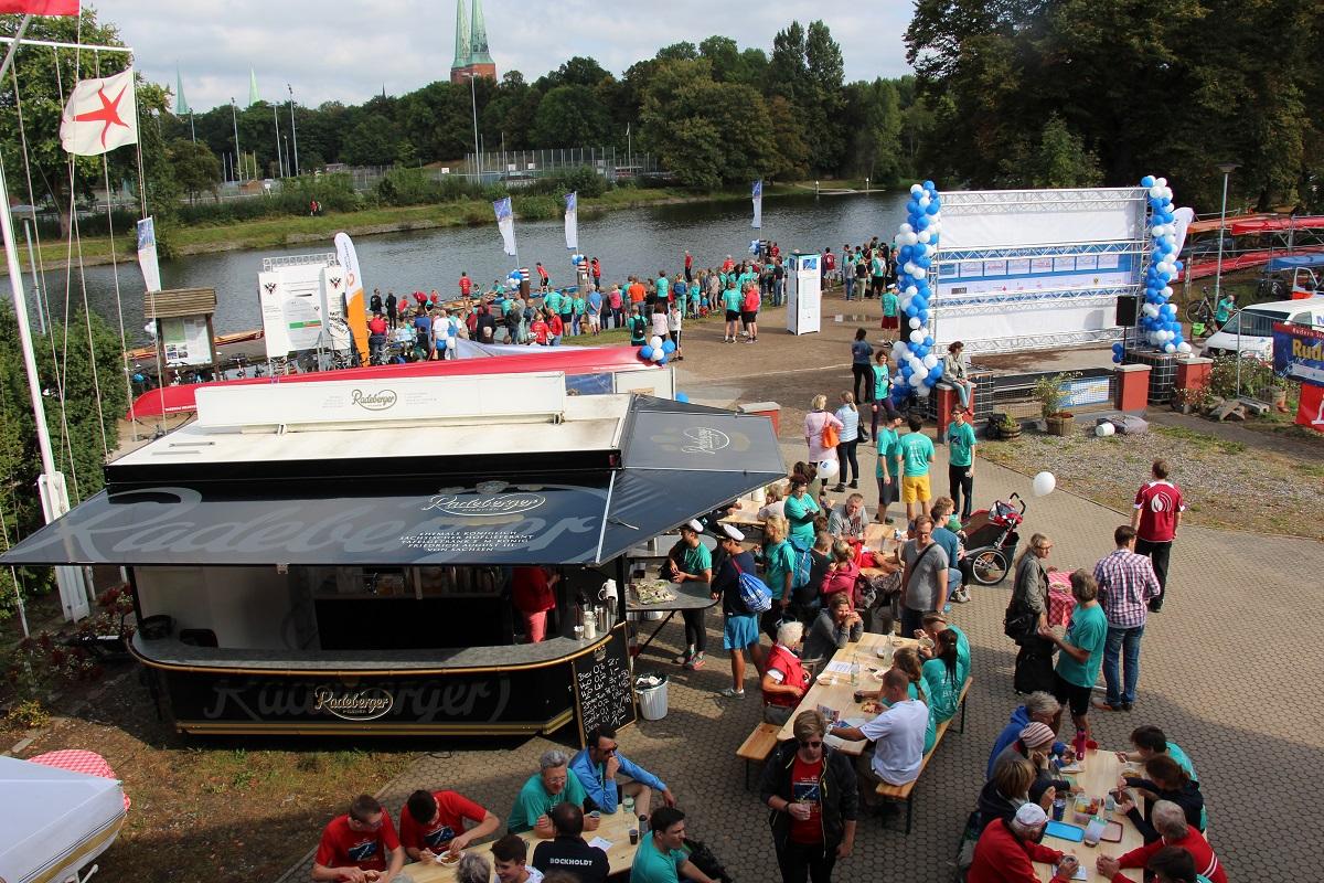 Südlich der Altstadtinsel und mit Blick auf die berühmten Lübecker Kirchtürme ruderten 48 Vierer-Mannschaften auf 300 Metern um die Wette. Trainiert wurden die Teams der regionalen Firmen von Mitgliedern des Lübecker Ruder-Klubs und Lübecker Frauen-Ruder-Klubs.