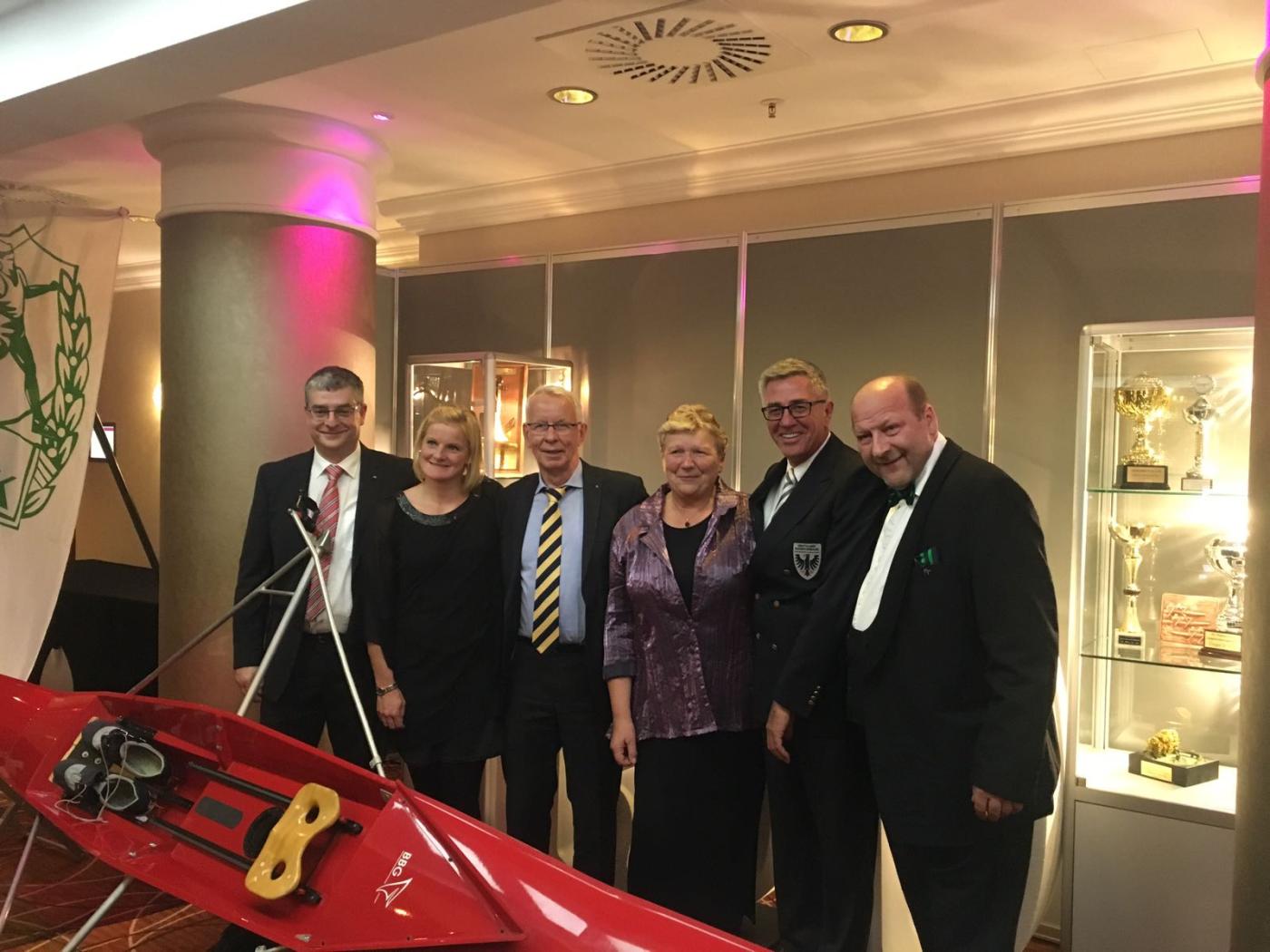 Sportbürgermeister Rosenthal überbrachte im Anschluss die Wünsche der Stadt Leipzig. Er hob besonders die große Zahl aktiver Ruderer in der Vergangenheit hervor und mahnte an, dass doch die drei Vereine diese Zahlen wieder erreichen sollten. In Zahlen sprach er (bei einer kleineren Stadt Leipzig) von über 2000 Mitgliedern in Leipziger Rudervereinen. Dagegen nehmen sich die aktuell 600 Mitglieder eher bescheiden aus. Anschließend gratulierte Siegfried Kaidel im Namen des Deutschen Ruderverbandes und überreichte die Ehrentafel des DRV stellvertretend an Thomas Krümmling.