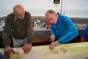 Der gesamte Freitag wurde den Kunststoffbooten gewidmet. Dabei wurde grundlegend zwischen Trainingsbooten und Rennbooten in Wabenbauweise unterschieden, da die Möglichkeiten einen Schaden zu beheben dort unterschiedlich sind. Es wurde fleißig von allen Beteiligten geschliffen, geklebt, gespachtelt und wieder geschliffen, solange bis man den im Voraus mit Hilfe von Hämmern hervorgerufenen Schaden „bei geschlossenen Augen nicht mehr erfühlen kann“, so Winterhoff. Im Anschluss wurde noch die Anwendung von Reperaturlack genau erklärt und geübt. Doch nicht nur die Beseitigung von Beschädigungen am Boot wurde vermittelt, sondern auch an Skulls und Riemen.