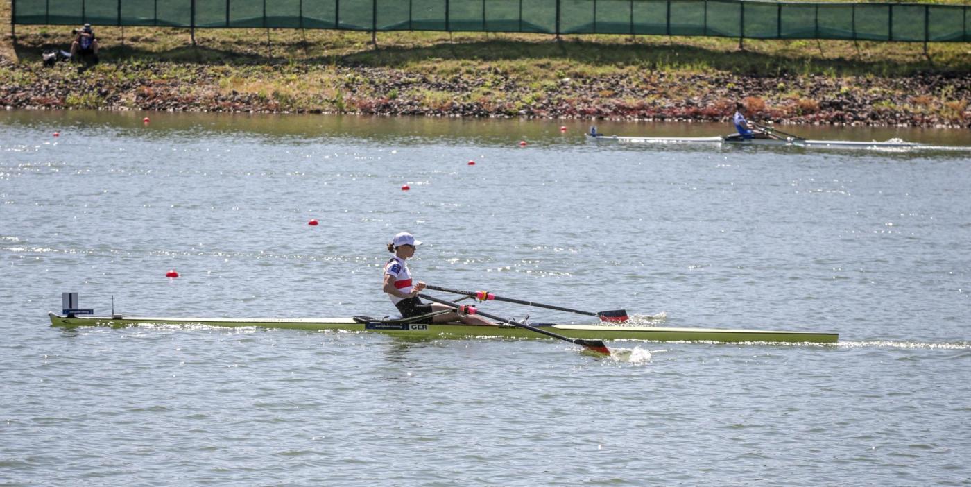 Nach dem Start im Leichtgewichts-Frauen-Einer fuhr Leonie Pieper an Position 3. Sie konnte dem Tempo der anderen Boote am Ende des Rennes leider nicht mehr folgen und belegte im Ziel knapp hinter Italien den sechsten Platz.