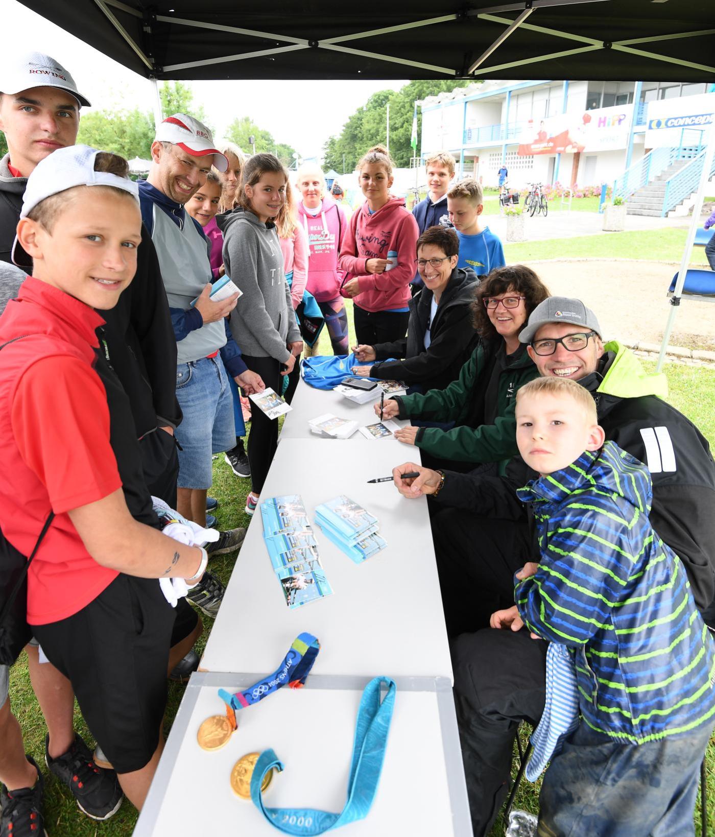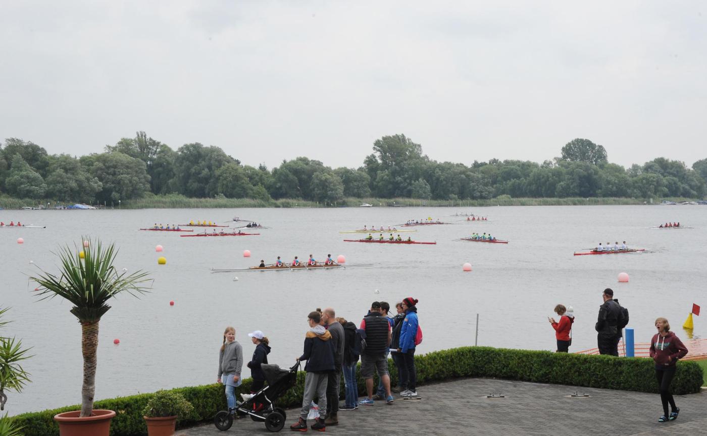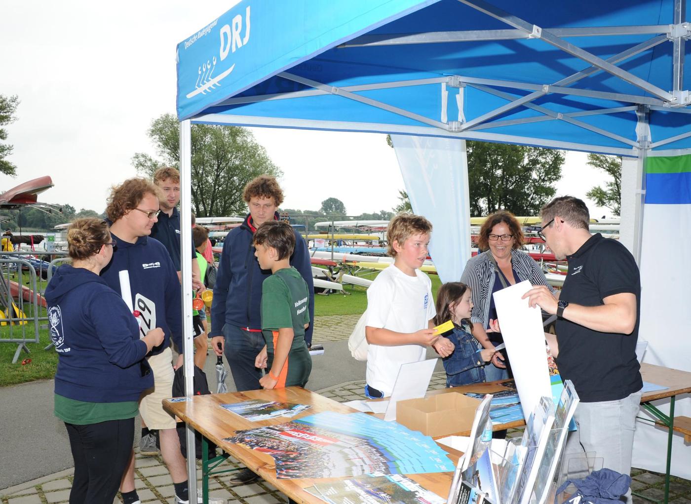 Am Samstag ging es dann in 16 Riegen zum allgemeinen Sportwettbewerb, bei dem in acht Aufgaben unter anderem Geschick, Schnelligkeit und Kraft, aber auch das Wissen im Rudersport, gefordert waren. Am Mittag wurde die freie Zeit genutzt, um die Umgebung zu erkunden und kurze Ausflüge zu unternehmen, oder um sich Autogramme von Marcel Hacker, Kathrin Boron und Kerstin Hartleib zu sichern. Die Berliner Ruderjugend entschied die Tageswertung für sich. Die Bayerische Ruderjugend konnte den zweiten, und die Ruderjugend NRW den dritten Platz bejubeln. Viel Spaß hatten alle Beteiligten beim Rennen der Betreuer. Insgesamt 33 Boote gingen an den Start. So viele wie nie. Und auch die Deutsche Ruderjugend ließ es sich nicht nehmen ein Boot zu stellen, das von Maskottchen Rudi gesteuert wurde.