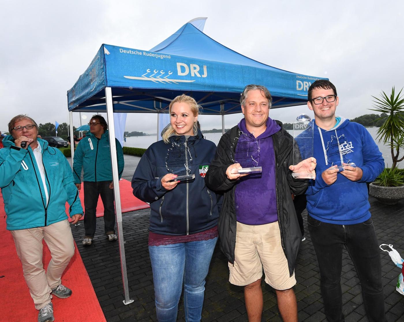 Es sollte nicht der letzte Pokal sein. Der Länderpokal wird für die höchste Punktzahl in allen drei Disziplinen vergeben und wurde erneut von der Ruderjugend NRW gewonnen, die sich knapp vor Sachsen-Anhalt und Berlin durchsetzen konnten. Für die Geburtstagskinder, die am Wochenende mit allen anderen feiern konnten, gab es neben einem kleinen Geschenk der DRJ ein Ständchen der gesamten Tribüne.