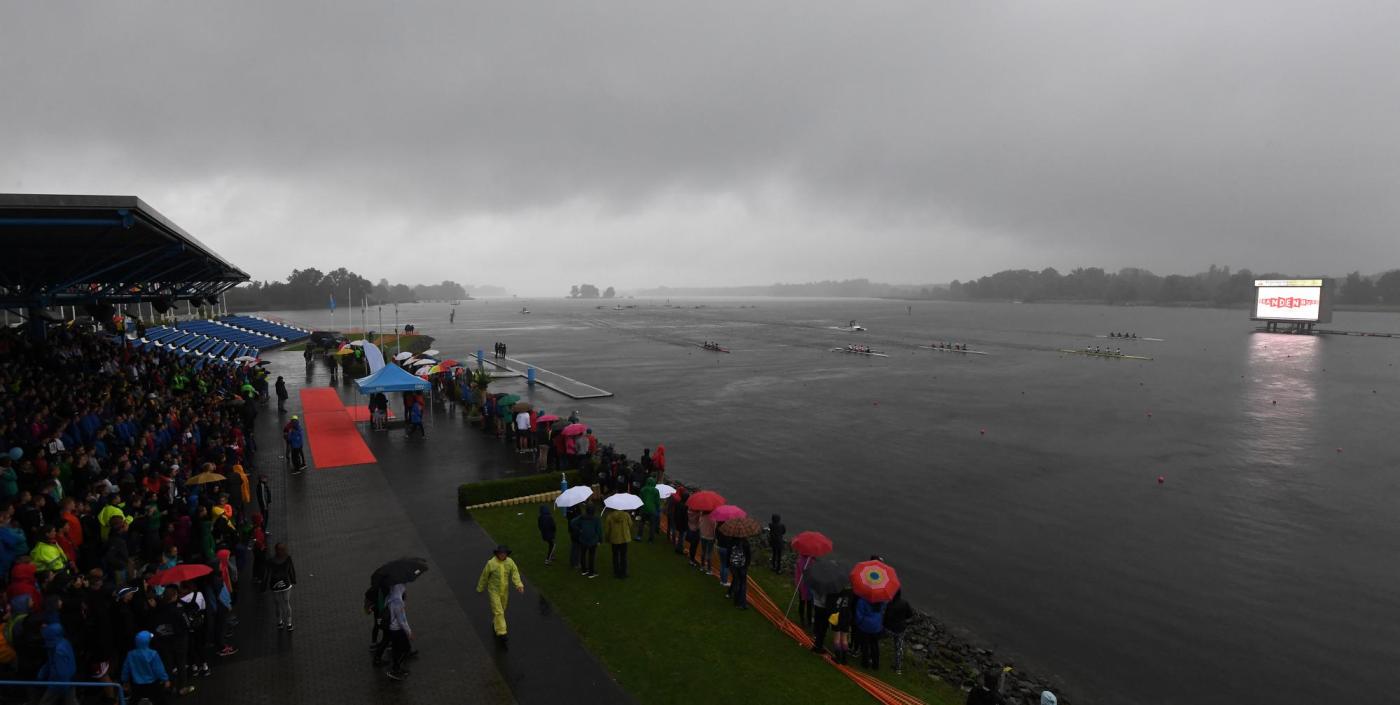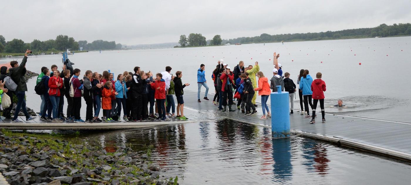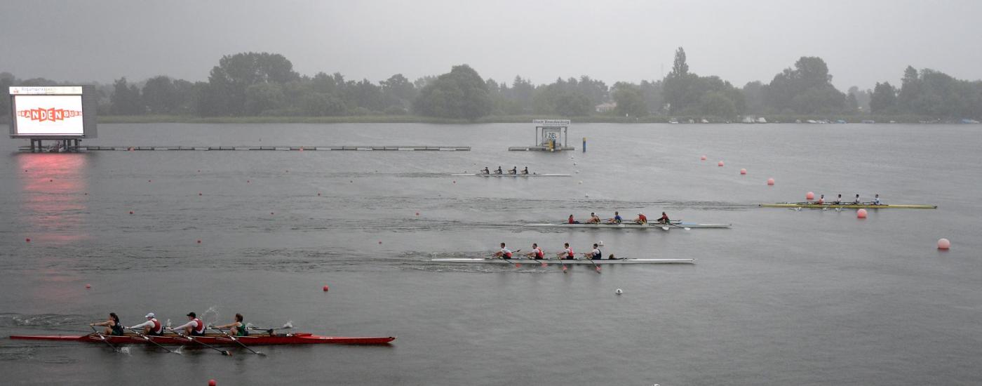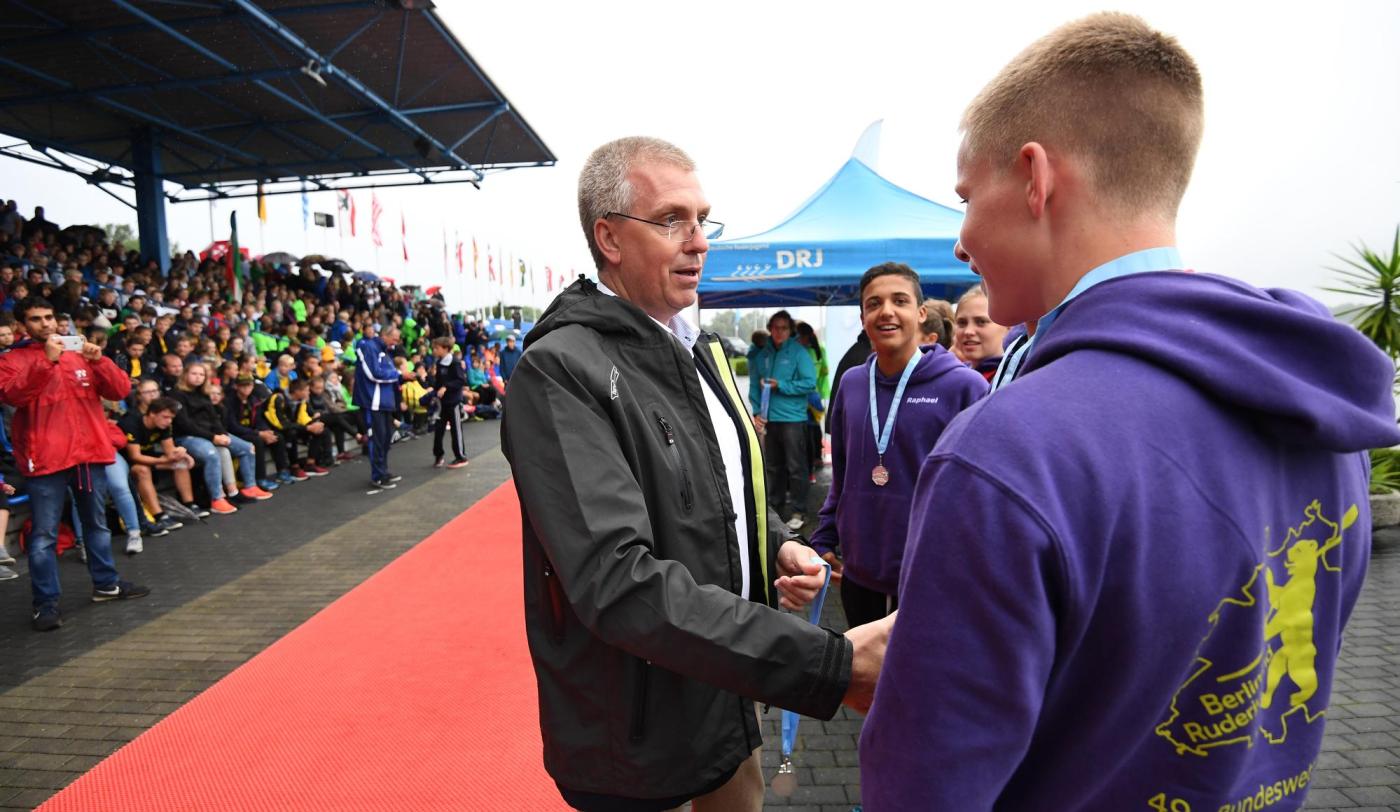 Am Freitag hatte das Warten dann ein Ende und standen die Rennen der Langstrecke über 3.000 Meter auf dem Programm. Die Ruderjugend NRW konnte sich knapp vor der Berliner Ruderjugend und der Ruderjugend Sachsen-Anhalt durchsetzen und als Tagessieger den ersten Pokal in Empfang nehmen. Bei der Siegerehrung herrschte trotz des unbeständigen Wetters ausgelassene Stimmung auf der Tribüne und die Sieger aus den eigenen Reihen wurden besonders frenetisch mit den jeweiligen Schlachtrufen des Bundeslandes gefeiert. Die schnellsten in den jeweiligen Rennen konnten sich zudem über eine Einladung zu den Jungen- und Mädchen-Lehrgängen zur sportlichen Jugendbildung freuen, die im September und Oktober in Ratzeburg und Berlin stattfinden.