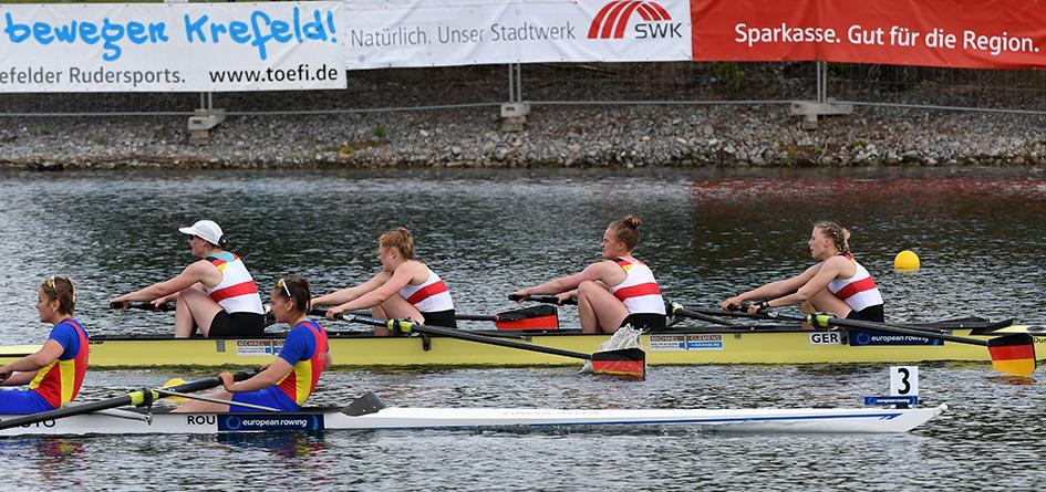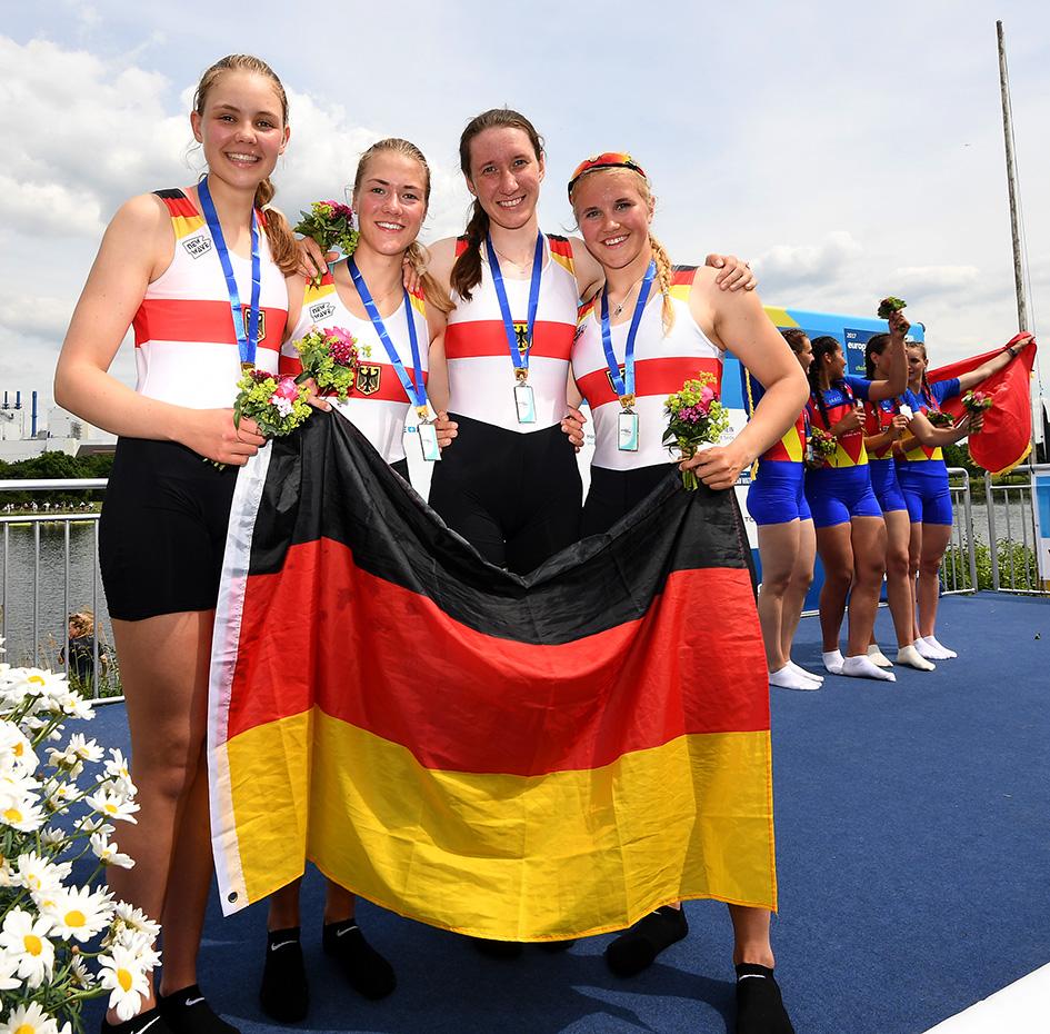 Mit einem Sieg über Frankreich qualifizierte sich der Juniorinnen-Achter für das morgige A-Finale. Auch der Junioren-Achter kann in den Kampf um die Medaillen eingreifen. Hinter den Niederlanden erruderte sich das Team den Platz im Finale. Damit sind bereits fünf Boote für die Endläufe qualifiziert. Die übrige Flotte rudert am Vormittag zunächst in den Halbfinals um die Qualifikation für die Top 6.