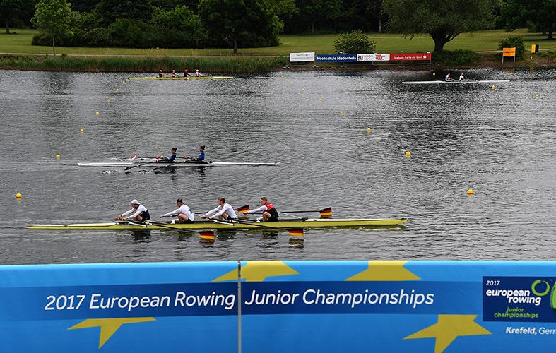 Der erste Start am Sonntag Morgen ist wieder um 8:30 Uhr. Ab Mittag starten dann die Finalrennen bei der Junioren-Europameisterschaft in Krefeld.