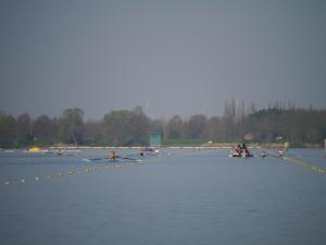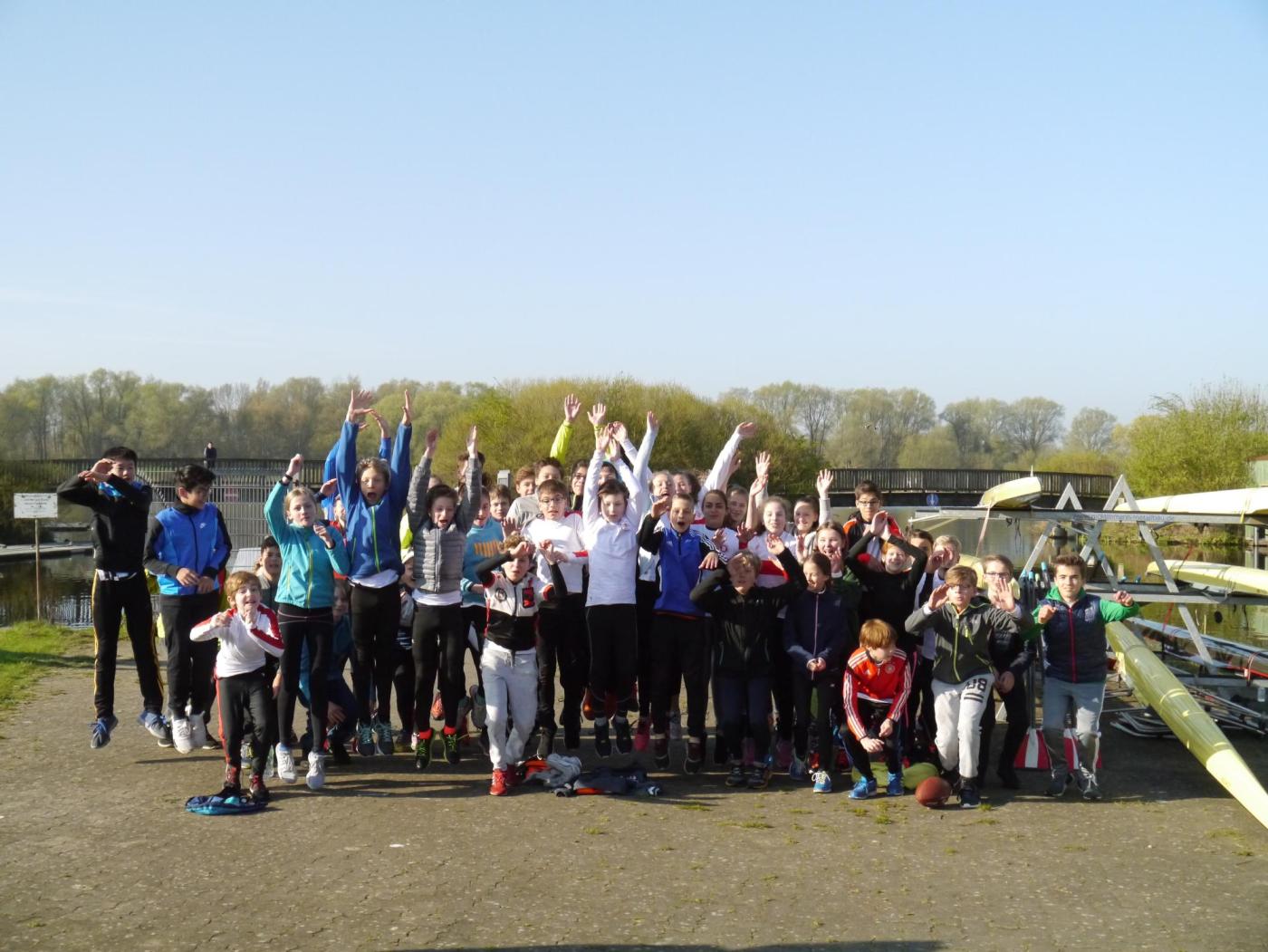 Am Sonntag früh begrüßte uns Allermöhe mit herrlichem Sonnenschein und spiegelglattem Wasser. Während die eine Gruppe direkt in die Boote stieg und ihre Runden auf der Regattastrecke fuhren, war bei der anderen Gruppe die Allgemeinathletik gefragt. Nach gemeinsamer Erwärmung standen die vor kurzem veröffentlichten Übungen für den Zusatzwettbewerb auf dem Programm und so wurde engagiert gesprungen, gelaufen, gezielt und geworfen und nebenbei wurden selbstverständlich jede Menge Fragen zu Ruderwettkampfregeln, Umwelt und Schifffahrtszeichen beantwortet. Die folgende Mittagspause hatten sich alle redlich verdient und das Essen schmeckte allen sehr gut, nur einige mögen es halt lieber besonders salzig! Im Anschluss tauschten die Gruppen, sodass jeder sowohl seine Kilometer auf dem Wasser als auch die Übungen an Land absolvierte.
