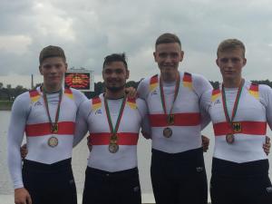 Der JM4- mit Henri Duis (Ruderverein Saarbrücken), Patrick Schlötel (Bessel-Ruder-Club Minden), Sönke Kruse (Ruderverein Münster von 1882) und Johannes Overhage (Frankfurter Rudergesellschaft Germania 1869) konnte ebenfalls zwei Plätze auf dem Podest ergattern und wurde über 500 Meter zweiter sowie über 2.000 Meter dritter.