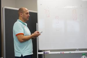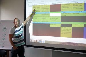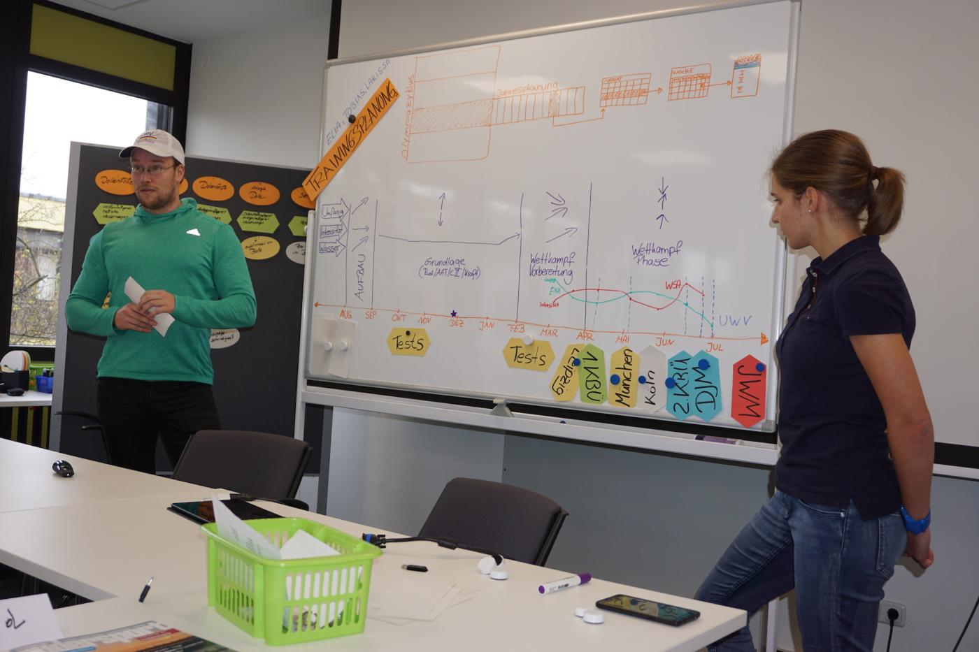 Der Vortrag von Tim Schönberg zur Trainingsplanung war schon allein deshalb eine Reise nach Ratzeburg wert, weil er uns in der Gruppenarbeit zum Lehrgangsende, bei der wir die Lehrgangsthemen zusammenfassen sollten, ein Tafelbild bescherte, das mich vor 36 Jahren sicherlich dazu bewogen hätte, mein Kündigungsschreiben an meinen damaligen Klassenlehrer Herrn Kost umgehend zurückzuziehen und mich kleinlaut und demütig den noch folgenden zehn Jahren Schulunterricht zu ergeben. Larissa, Elia, Tobias, das war eine Wucht.