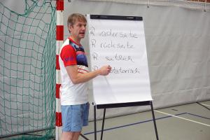 Eine gelungene Mischung von Theorie und Praxis präsentierten uns Martin Zawieja und Jürgen Hofmann zum Thema Krafttraining. Mit vielen Ideen fürs Kinder- und Jugendtraining und nochmals bestärkt, einfach mal Neues auszuprobieren, bin ich nach Hause gefahren. Da versucht man dann schon mal mit Besenstielen das Aufwärmprogramm „Augsburger Puppenkiste“. Hat funktioniert.