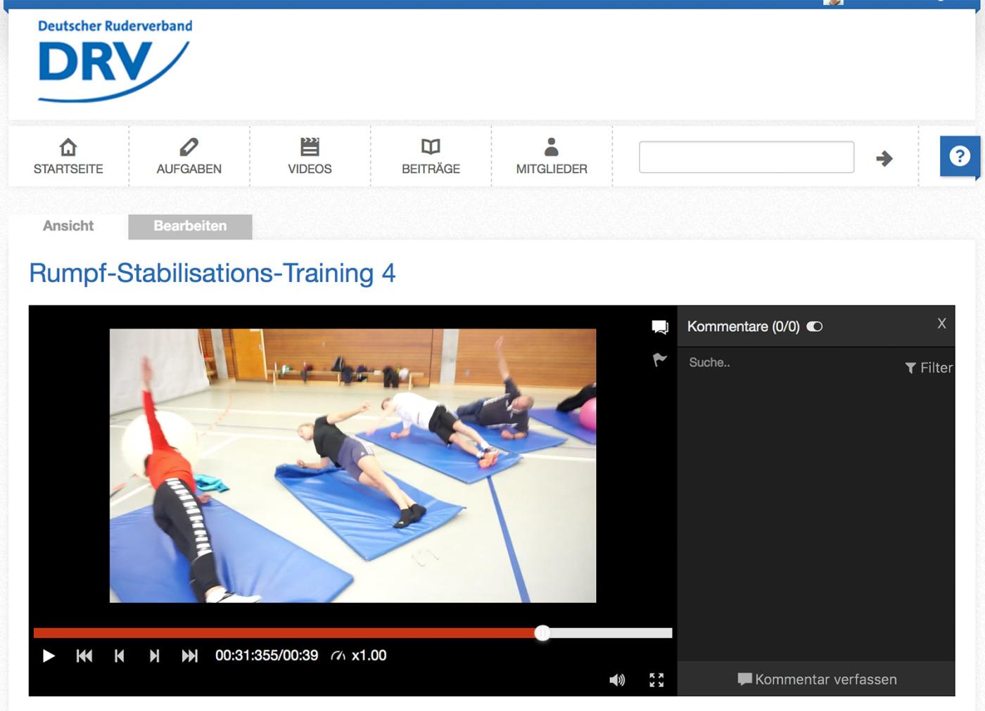 Mit einem kurzen Ausflug in die Sportmedizin im weitesten Sinne mit Dr. Gerd Schwiethal war unsere erste Zusammenkunft auch schon vorbei, und wir konnten uns langsam mit unserer Haupthausaufgabe, einer Aufgabe zur Selbstreflexion vertraut machen. Hier stand uns ein von vielen zuerst ein wenig skeptisch beäugtes Instrument zur Verfügung, die E-Learning-Plattform edubreakSportcampus. Das über dieses Portal mehr möglich ist, als einfach nur Dokumente online zu stellen, konnten wir mit der Aufgabe erfahren: Wir luden also alle einen Kurzfilm von und über uns ins Netz, der uns in unserer alltäglichen Arbeitsumgebung mit unseren Sportlern zeigen sollte. Der konnte nun von wiederum allen Teilnehmern und freigeschalteten Dozenten sekundengenau kommentiert und mit Markierungen versehen werden. Eine feine Sache, die schon mal dazu verleiten konnte, eigene nicht aufgabenrelevante, aber trotzdem interessante Rudervideos hochzuladen und zur Diskussion freizugeben. Die Resonanz auf die Videos, heißt die Anzahl der Beiträge, war durchaus beeindruckend. Einen besonderen Dank an die beiden Psychologinnen Dr. Gaby Bußmann und Sophie Petzold, die sich neben ihrem Thema Sportpsychologie die Zeit nahmen, mit uns ausgewählte Videos hinsichtlich der Kommunikation des Trainers mit dem Sportler exemplarisch zu besprechen. Das war eine echte intellektuelle Aufwertung im Kreise von uns, seht mir das nach, Turnhosenträgern.