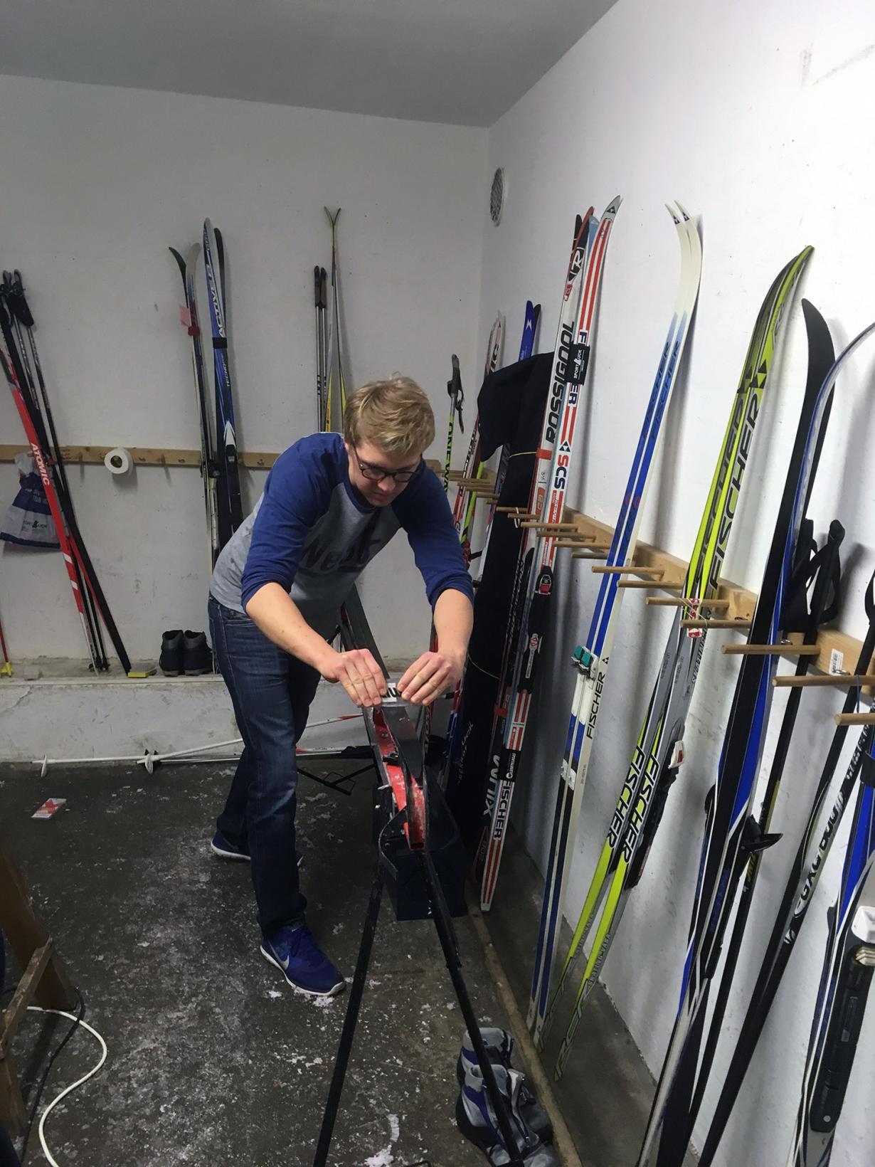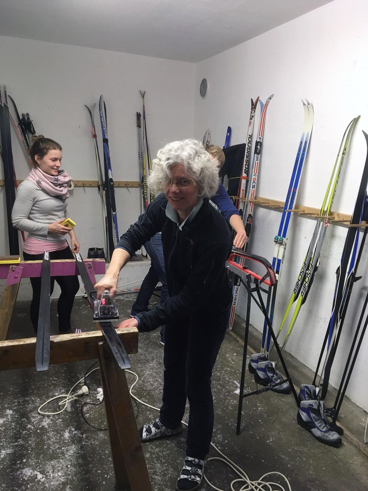 Treffpunkt und Beginn des DRV-Wochenendseminars für Skilanglauf in Oberhof vom 10. bis 12. Februar 2017 war der Skiverleih Sport Luck. Bis 18.00 Uhr haben sich die Teilnehmer die Skiausrüstung ausgeliehen und wurden von den Dozenten Stefan Plees vom Hessischen Skiverband und Katja Krächter begrüßt. Gleich nach der kurzen Kennenlernrunde und dem Abendessen am Tagungsort Sporthotel Oberhof ging es los mit der Materialkunde und einem Lehrfilm über die klassische Skilanglauftechnik. Klassische Langlaufskier, die sich in Länge, Steifigkeit und Abstoßzone unterschieden wurden vorgestellt und deren Anwendung in Abhängigkeit der Erfahrung und Ambition des Sportlers erläutert. Je nach Abstoßzone werden die Skier auch unterschiedlich gepflegt und präpariert.