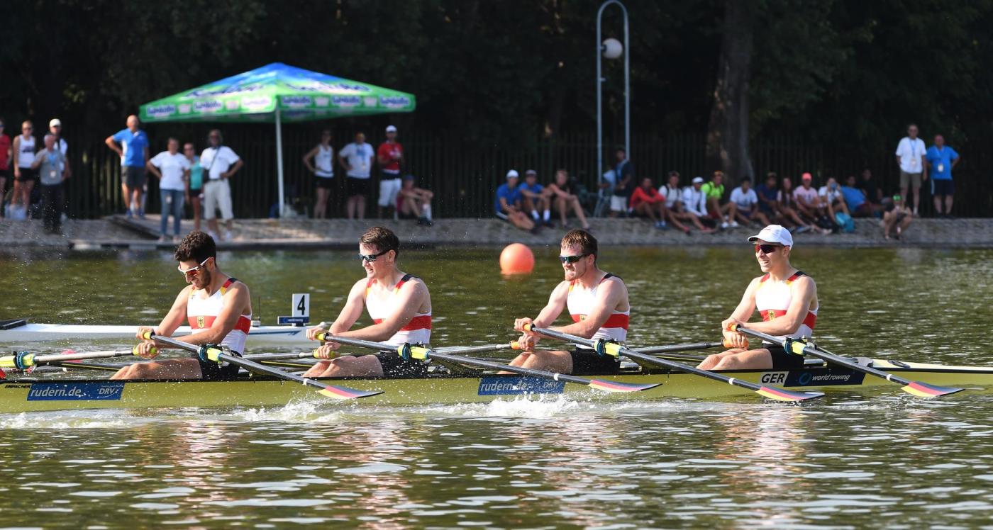 Der Männer-Vierer ging das Rennen beherzt an und fuhr zu Beginn an dritter Position im Feld. Dann kamen allerdings Litauen und Serbien auf und fuhren an Deutschlandvorbei. An der Spitze entwickelte sich ein Kampf zwischen Australien und Großbritannien, den Australien in einer neuen U23-Weltbestzeit von 5:44,28 Minuten für sich entschied. Auch der Serbien als Dritter unterbot die alte Weltbestzeit. Trainer Ralf Bockelmann sagte nach dem Rennen: „Die junge Crew aus drei 19 und einem 21- Jährigem ist konstant gefahren. Ich habe drei gute Rennen gesehen. Vielleicht hatte sie nicht ganz die Lockerheit von gestern. Im anderen Lauf wären wir mit dieser Zeit Dritter geworden.“