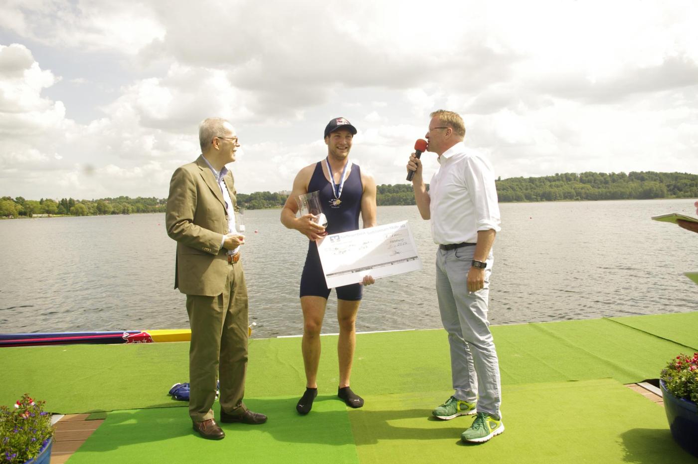 Bei den Herren weilte zwar Tim-Ole Naske (HANSA Hamburg) im Ratzeburger Revier; er bereitete sich aber auf andere Wettbewerbe vor. Wie durch Zufall sah seine Vorbereitung aber eine Belastung vor. Die, so Tim-Ole Naske, konnte er genauso gut, nicht wie vorgesehen, allein auf dem Ratzeburger See, sondern im Rahmen der Regatta auf dem Küchensee fahren. „Geld kann ein Sportler immer gebrauchen“, frohlockte der Naske dann Kommentator Sebastian Franke ins Mikro. Recht hat er und die Gäste waren dankbare Zuschauer dieses Ereignisses.