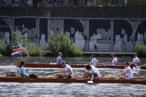 Die Tage bis zur Royal Regatta Heidelberg vergingen wie im Fluge und der Regattaverband hatte wie vor jeder Regatta viel zu tun. Zwei Startpontons mussten aufgebaut werden, keine leichte Aufgabe, denn jeder Ponton muss mit drei schweren Ankern (20 kg) befestigt werden, betont Paul Menold, Leiter des Technikteams des HRV. Auch der Einsatz der drei Katamarane des Arbeitsboots muss geplant, die Aufgaben des sechs köpfigen Technikteams koordiniert werden. Am Ende stand fest, dass es vor dem Royalen Rennen im Gig Achter drei Ruder Vorrennen geben wird: