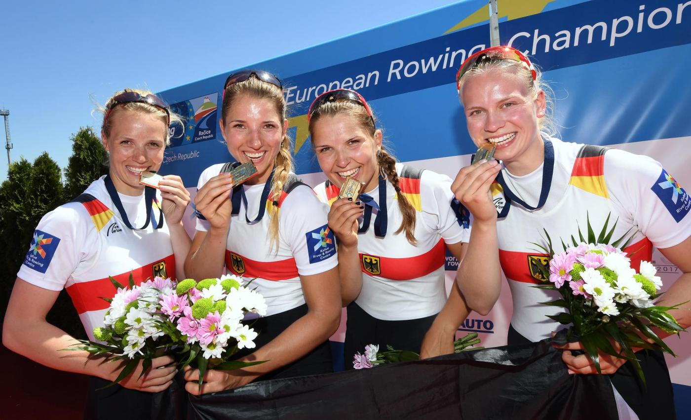 Bei der Abstimmung zum „Ruderer des Monats Mai“ hat sich Frieda Hämmerling deutlich durchgesetzt – herzlichen Glückwunsch. Die 20-Jährige Athletin der Rudergesellschaft Germania Kiel von 1882 ist in Racice (Tschechien) Europameisterin im Frauen-Doppelvierer geworden. Erst im letzten Jahr ist Frieda von der U19 in die U23 aufgestiegen, in diesem Jahr folgte die direkte Nominierung für die A-Mannschaft. Im Interview spricht die Newcomerin unter anderem über die Gründe für ihren rasanten Aufstieg und ihre weiteren Saisonziele.