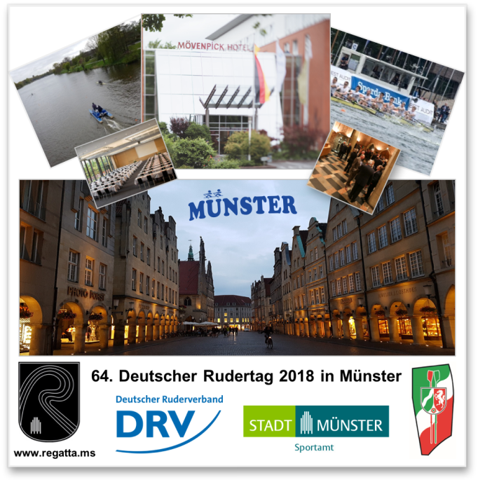 Der 64. Deutsche Rudertag findet im kommenden Jahr am Samstag, den 3. November 2018, im Mövenpick Hotel am Münsteraner Aasee statt. Der DRV freut sich, dass der Münsteraner Regattaverein im Rahmen seines 30-jährigen Jubiläums die Ausrichtung übernommen hat.