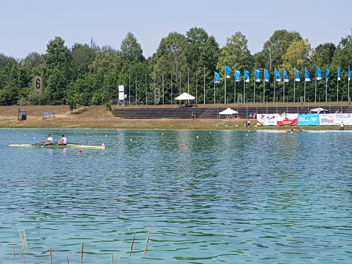 Die Olympiastrecke von 1972 in München-Oberschleißheim bot nur wenig Abkühlung. Aufgrund eines Unfalls an der Autobahnabfahrt und des dadurch entstandenen Staus musste der Rennbeginn von 9 Uhr auf 10 Uhr verschoben werden, sonst hätten viele Ruderer ihren Start verpasst. Hier gilt der Dank dem Ausrichter Regatta München e.V. für die schnelle Reaktion. Aufgrund der Verzögerung waren die Temperaturen beim Start des ersten Rennens allerdings schon auf Ende 20 Grad gestiegen.