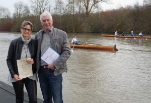 Der Ruderclub Hamm ehrte Birgit und Dieter Müller für 25 Jahre Tätigkeit als Trainer – und es kamen zwar nicht alle aus dieser Zeit aber so viele, dass die Hälfte der fast 200 Gäste stehen mussten. So voll hat man das Clubhaus auf dem Lippedamm lange nicht mehr gesehen. Umso überraschter war das Ehepaar Müller über die – ganz im Stillen vorbereitete - Ehrung für 25 Jahre Trainer-Hochzeit – mit westfälischen Dehnungs-O nicht geschrieben aber gesprochen.