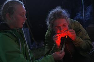 An den Wünsch-dir-was Tagen durften die Teilnehmer selbst entscheiden, welche Aktivitäten sie wahrnehmen wollen. Das Angebot war groß! Rudern, Angeln, Schwimmen, Feuermachen, Yoga, Stabitraining um nur eine Auswahl zu nennen. Einvernehmlich entschieden sich die Teilnehmer an zwei von drei Wünsch-dir-was-Tagen gegen das Rudern um die Gelegenheit zu nutzen viele Wildlife-Skills zu lernen. Der Feuerworkshop erfreute sich immer großer Beliebtheit und so lernten die jungen Zündelgeister wie man auf die verschiedensten Weisen Feuer macht! Mit einer Brennlupe, Feuersteinen und Firestrikern. Wie man ein Lager im Freien aufbaut lernt man dagegen am Besten im Ernstfall und so bereiteten wir am Ende der ersten Woche den Aufbruch in die Wildnis vor. Nur das nötigste wurde gepackt um ein Lager unter Planen zu bauen und mit dem Nötigsten versorgt zu sein. Es ging hinein in den Wald, hinauf den Berg, hin zu den drei Seen, die es zu erkunden galt. Weit ab vom Campingplatz und der nächsten Straße kam endlich richtiges Naturfeeling auf. Lukas und Phil angelten Barsche und peppten das Abendessen mächtig auf, auch wenn nicht jeder Fisch am Haken seinen Weg in die Pfanne fand. Die Dusche am nächsten Morgen gab es mit biologischer Seife im See zumindest für diejenigen, denen das Wasser nicht zu