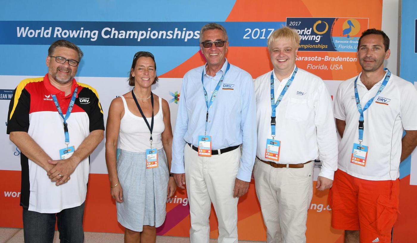 Seitens des DRV sind in Florida der Vorsitzende Siegfried Kaidel, sein Stellvertreter Moritz Petri, Uwe Graf, Leiter des Fachressorts Leistungssport sowie Katharina von Kodolitsch, Ressortvorsitzende Verbandsentwicklung und Vereinsservice vor Ort. Die vier schauen aber nicht nur die Rennen, sondern führen zusammen mit Sportdirektor Mario Woldt viele Gespräche und Abstimmungen mit anderen Nationen.
