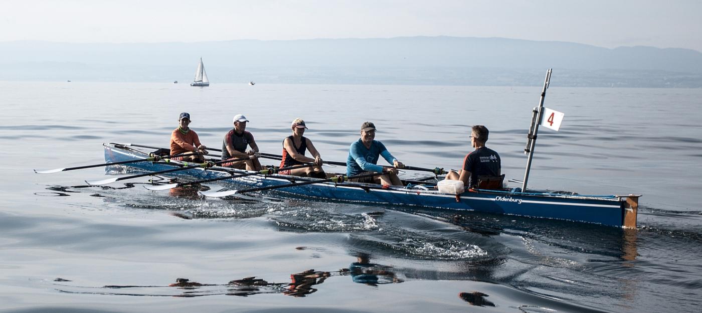 Mit 15 Mannschaften war das Meldefeld zur 45. Edition der Genfersee-Regatta am 22. bis 24. September am unteren Rand des normalen Schwankungsbereichs. Neben den üblichen Verdächtigen vor allem aus Deutschland, und hier einmal mehr herausragend der Oldenburger Ruderverein mit Beteiligungen in 3 Teams, waren auch einige neue Gesichter zu sehen. Bei Teilnehmern aus 5 Nationen (Schweiz, Deutschland, Frankreich, Niederlande, Russland) wurde internationales Flair v.a. von der Vereinsmannschaft des English Rowing Club St. Petersburg eingebracht. Letzterer pflegt schon länger freundschaftlichen Kontakt mit der veranstaltenden Société Nautique de Genève (SNG) und war für sportliche Vergleiche schon mehrfach die lange Reise nach Genf angetreten, u.a. für die Schlechtwetter-Tour von 2012 mit dem schlechten Ende wenige 100 m vor dem Ziel (Absuff). Zwei Wochen zuvor auf den World Rowing Masters in Bled noch über 1000 m sehr erfolgreich, stellten die 160 km der Tour du Léman für die Fünf doch einen bemerkenswerten Kontrapunkt dar. Hinsichtlich des Kampfes um den Gesamtsieg standen alle Zeichen auf ein hartes Duell zwischen den auf einer Position veränderten, historisch knapp geschlagenen Vorjahreszweiten der deutsch-niederländischen Rgm. Bad Cannstatt/Kleve/Köln/Neuwied/Tilburg und dem mit Hamburger Frischblut aufgepimpten Boot der 3 Streckenrekordhalter aus 2011 (11:43:30 Stunden), die Renngemeinschaft Bonn/Hamburg/Hamm/Nürtingen. Nach erfolgreichen gemeinsamen Langstrecken-Projekten im laufenden Ruderjahr trat man nun auf neutralem Boden zum großen Showdown gegeneinander an.