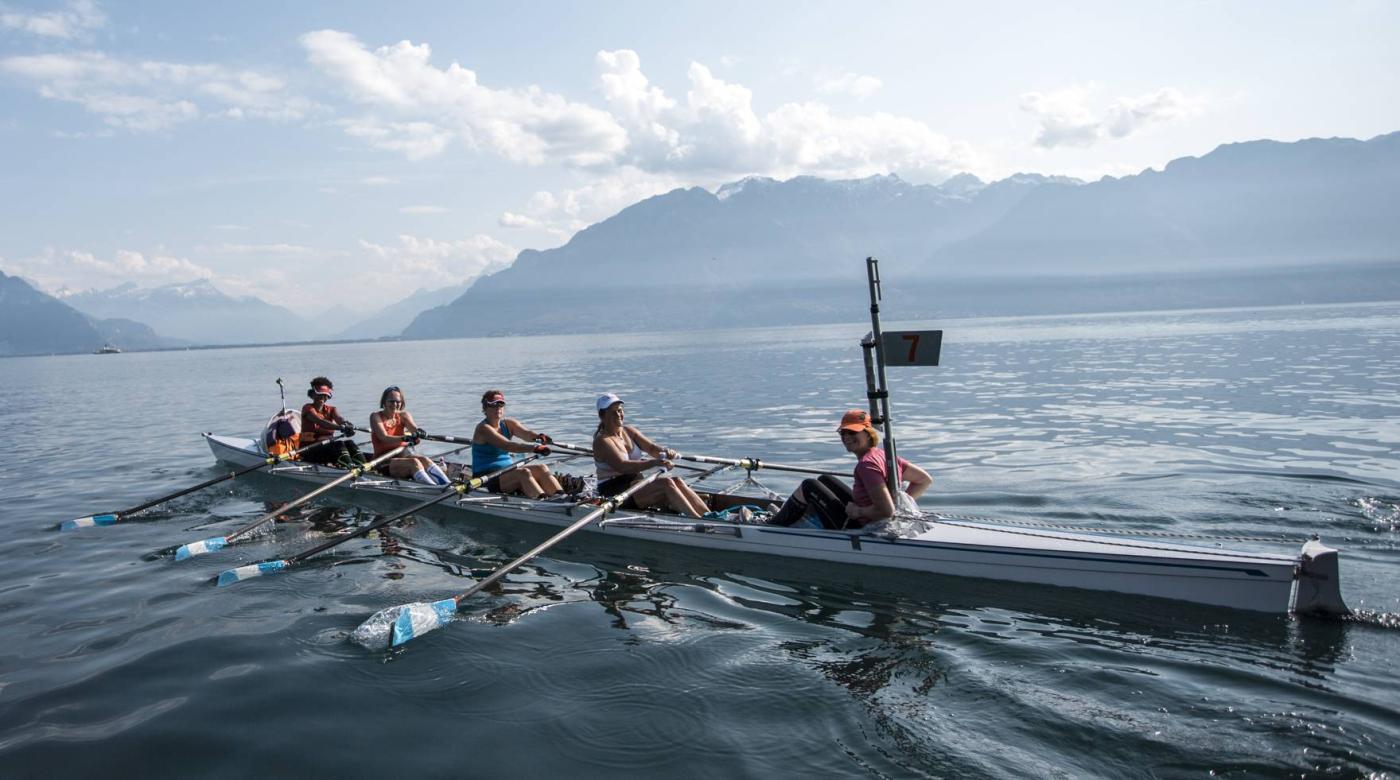 Der Freitag war wie immer den umfangreichen Bootspräparationen vorbehalten, die bis zum Beginn des offiziellen Programms am frühen Abend größtenteils vollbracht waren. Nach der Strecken- und Sicherheitseinweisung startete um 18:30 Uhr der Empfang. Besondere Teilnehmer wurden vorgestellt, der Jubilar Christian Klandt (Bonner RV) für seine 30. Teilnahme geehrt und die Vorjahresrekordler der Masterskategorie, die Rgm. Bad Cannstatt/Hamm/Nürtingen/Ulm, mit einem Zinnteller bedacht. Rio-Sieger Lucas Tramér (LM 4-) gab der Begrüßungsveranstaltung als Special Guest olympischen Glanz. Das folgende, heißersehnte Häppchenfassen startete etwas zäh um sich dann, wie erhofft, fulminant zu steigern. Gut gesättigt gab es durch Fernseh-Meteorologen Philippe Jeanneret noch das erhoffte Sahnehäubchen in Form einer positiven Wetterprognose obendrauf. Abgesehen von der Eventualität morgendlicher thermischer Winde aus Norden im Bereich Rolle-Morges waren sehr gute äußere Bedingungen mit Sonne, wenig Wind und Temperaturen um 20°C zu erwarten!