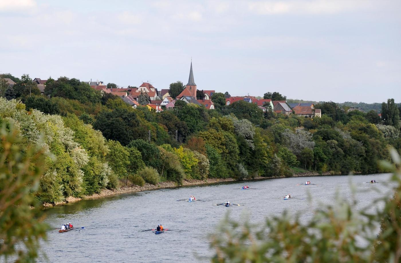 Rund 30 Boote wurden anderntags in Eltmann in den Main geschoben, der von den Franken als „das Wanderruderparadies schlechthin“ gepriesen wird. Vorbei an grünen Wiesen und Wäldern, sanften Hügeln, naturbelassenen Flussauen, aber auch Baggerseen, und sonnenverwöhnten Weinbergen führte die Tagestour über 36 Kilometer flussabwärts zurück nach Schweinfurt. Drei Schleusen waren auf dem Weg zu passieren, lange Wartezeiten gab es dank guter Organisation jedoch nicht. Ausreichend Zeit blieb aber für die Mittagsrast auf dem Gelände der Sportvereinigung 1920 Untertheres. Dort wie auf der ganzen Tour wurden auch die Ruderer von der Sonne verwöhnt.