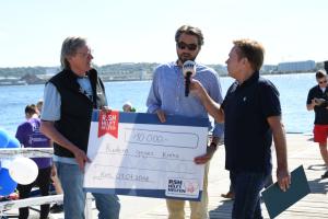 Hauptsponsor ist in diesem Jahr mit 10.000 Euro die „R.SH hilft helfen“ Stiftung. Martin Hülsmann, Stellvertretender Vorsitzender übereichte den Scheck während der Regatta persönlich an Claus Feucht, Vorstand der Stiftung „Leben mit Krebs“.