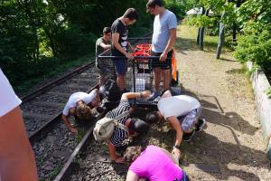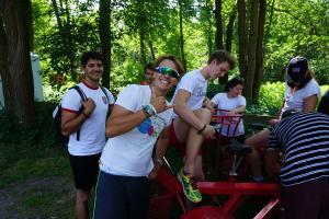 Am Morgen des nächsten Tages begannen Fiona und Ferdinand mit der Präsentation der Ergebnisse des vergangenen Treffens der Sprecher der Freiwilligendienste im Sport aus ganz Deutschland in Naumburg. Das Highlight des Programms war eine Drei-Muskel-Tour am Nachmittag, bei der wir gemeinsam in Ratzeburg Drachenboot, Teambike und Draisine gefahren sind.