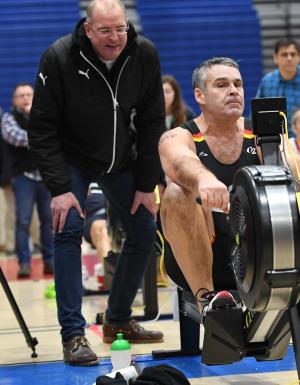 Den zweiten Renntag eröffneten die Masters des Teams. Der 75 jährige Dresdener Christian Sommer fuhr einen Start-Ziel-Sieg heraus. Mit der Siegerzeit von 7:13,7 Minuten sicherte er sich den globalen Titel und blieb nur 3 Sekunden über dem Weltrekord. Bei den 55-59 jährigen Leichtgewichts-Ruderern ging es in der Spitze ganz eng zu. Am Ende hatte der Vilshofener Josef Reiter das bessere Ende für sich und sicherte sich nach einem starken Endspurt in 6:49,1 Minuten die Goldmedaille. Bereits das zweite Gold am frühen Morgen für das „Concept2 Team Germany“. Nun fuhren sich die Masters in einen wahren Goldrausch. Direkt im nächsten Rennen war Johannes Marx (Saarbrücken) bei den 55-59 Jährigen an der Reihe. Auch der 55 Jährige war vom Start weg der Konkurrenz enteilt und siegte in 6:30,0 Minuten. Das war noch nicht der letzte Streich. Der 39 jährige Leichtgewichtsruderer Matthias Schömann-Finck (RV Saarbrücken) hatte sich bei den 30-39 Jährigen bereits vier Mal den Titel gesichert. Dies wollte er unbedingt als Oldie in dieser Altersklasse noch einmal wiederholen. Bis zur 1.500 Metermarke sah er auch wie der sichere Sieger aus. Auf den letzten Metern wurde es dann aber noch einmal richtig spannend und am Ende rettete er sich mit 3 Zehnteln Vorsprung über die Ziellinie und gewann in 6:22,1 Minuten seinen fünften Ergo-Titel in seiner Karriere. Den Schlusspunkt setzte dann Tobias Stöhr bei den 30-39 jährigen Männern. Eine Medaille wollte der reine Fitnesssportler unbedingt haben und die erkämpfte er sich. Am Ende hieß es in 6:15,7 Minuten Silber für ihn.