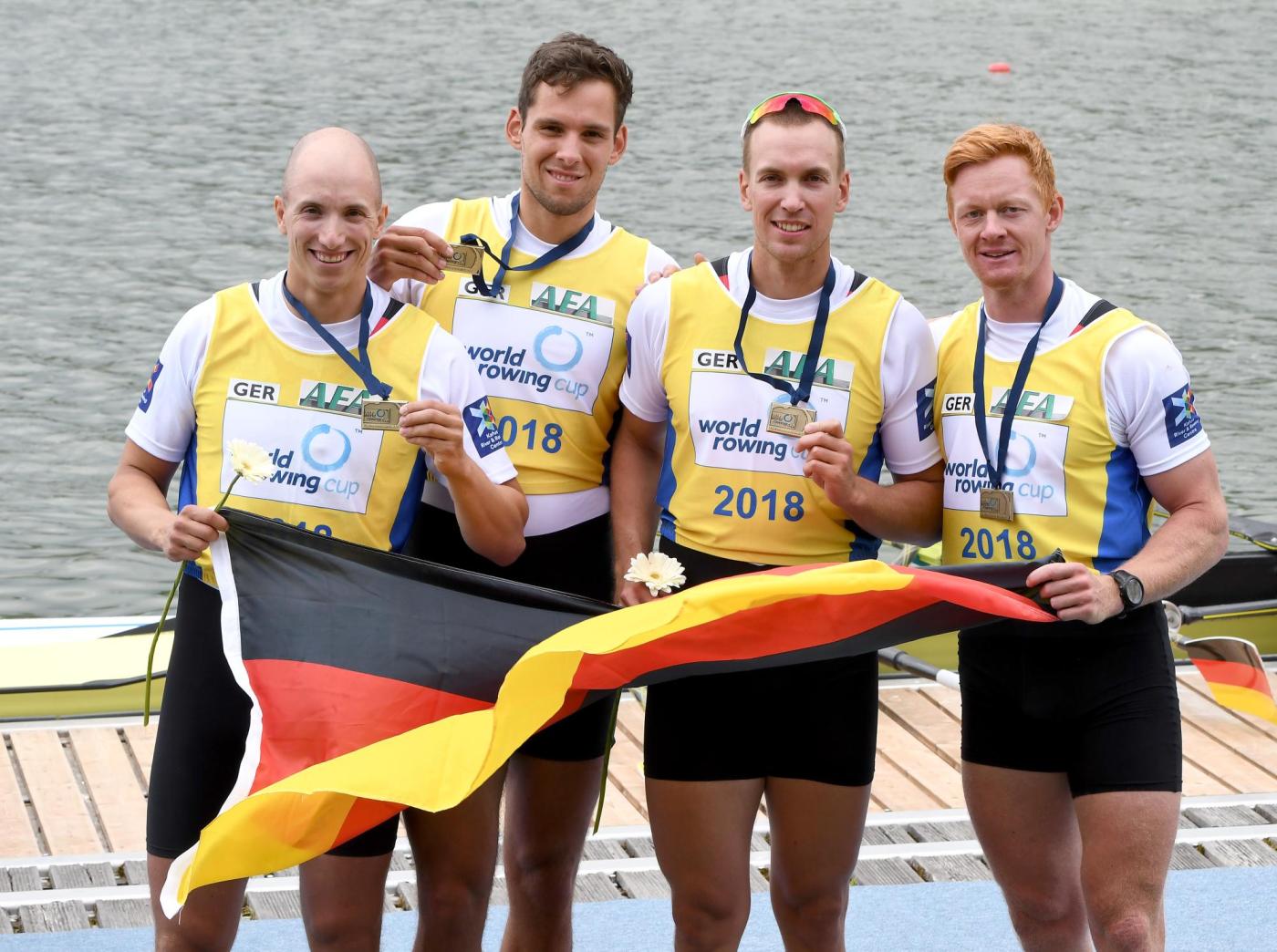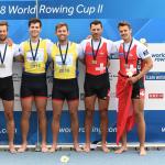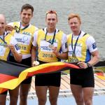 Ruben Steinhardt, Philipp-André Syring, Hans Gruhne und Stephan Krüger gewinnen Bronze im Männer-Doppelvierer. In dem sehr engen Feld liegt die deutsche Crew zunächst in Führung, dann ziehen die Italiener vorbei. Das deutsche Quartett kontert, schiebt sich wieder an die Spitze, muss dem starken Endspurt der Italiener und Niederländer jedoch Tribut zollen und fährt auf Platz drei über die Ziellinie.
