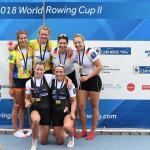 Die Medaille knapp verpasst hat der deutsche Frauen-Vierer mit Sophie Oksche, Frauke Hacker, Ida Kruse und Alexandra Höffgen. Die Crew von Trainer Werner Nowak ist gut aus den Blöcken gekommen, musste dann aber die Konkurrenz etwas ziehen lassen, um sich später wieder an die führenden drei Boote heran zu kämpfen. Der spannende Endspurt reicht nicht ganz für eine Medaille, das deutsche Boot fährt auf Platz vier durchs Ziel.