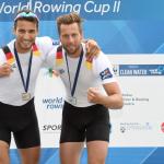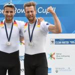 Die Silber-Medaille im Männer-Doppelzweier geht an Timo Piontek und Lars Hartig. Die beiden kommen sehr gut ins Rennen und bauen ihre Führung bis 1250m aus. Dann folgt die Attacke der Briten, die die deutsche Crew nicht zu kontern vermag, dafür aber erfolgreich den Endspurt der Schweizer und Neuseeländer abwehrt und sich den zweiten Platz sichert.