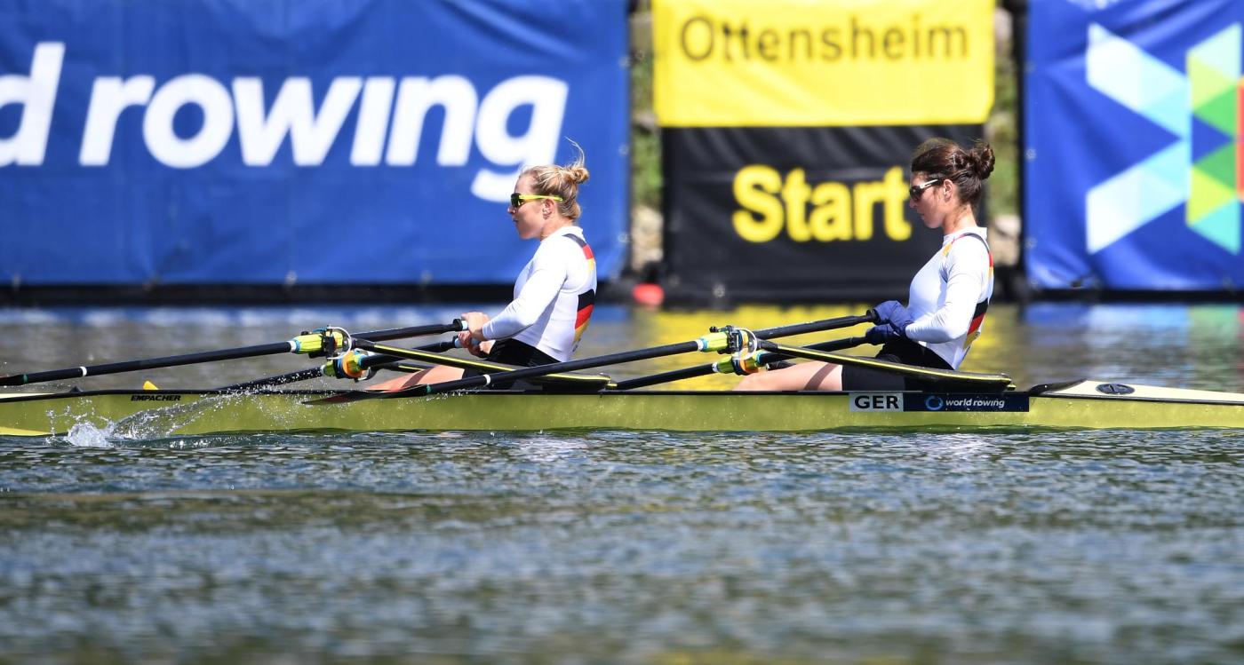 Die erste Medaille des Tages geht jedoch auf das Konto von Carina Bär und Michaela Staelberg im Frauen-Doppelzweier. Vom Start weg geht das Duo in Führung, dicht gefolgt vom zweiten deutschen Boot mit Charlotte Reinhardt und Frauke Hundeling. Bär/Staelberg halten die Führung bis zur Streckenhälfte, müssen dann aber die Niederländerinnen und die Kiwis ziehen lassen und gewinnen Bronze. Reinhardt/Hundeling werden sechste.