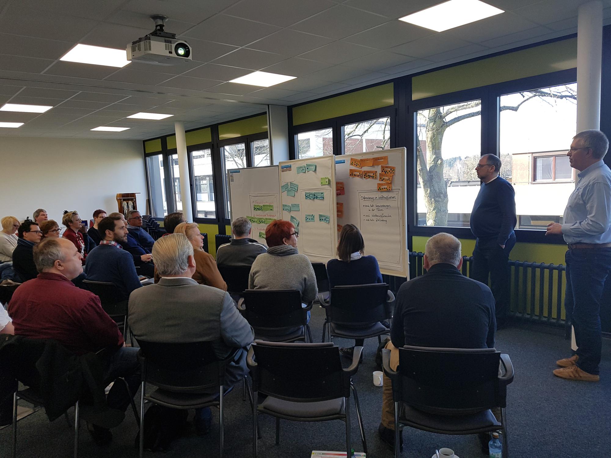 Nach dem Frühstück am Samstagmorgen wurden alle Ehren- und Hauptämtler aufgefordert, die am Vortag vorgestellten Rückmeldungen der Vereinen zu priorisieren und in jeweils zwei bis drei Leitideen zusammenzufassen.