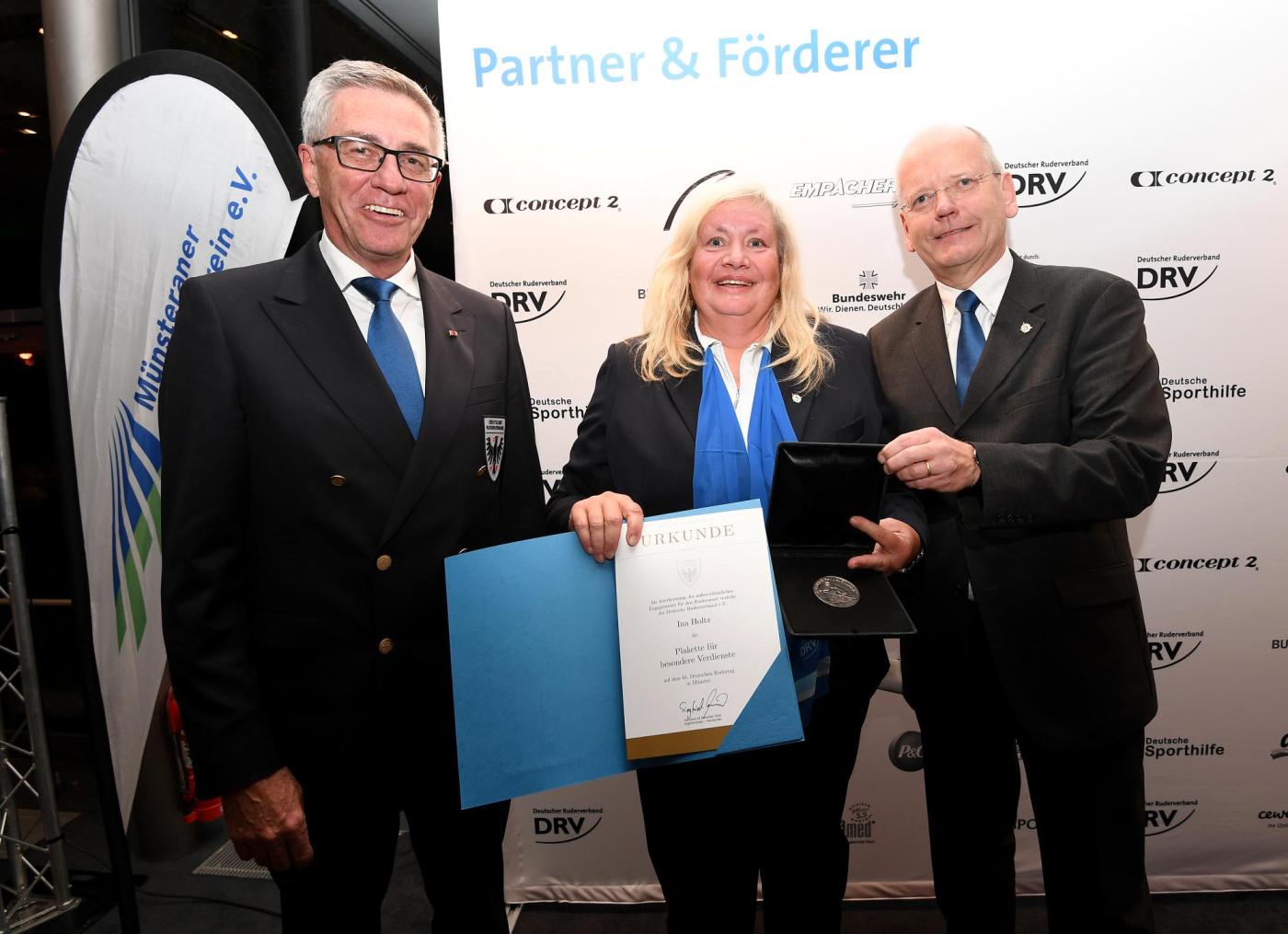 Ina Holtz, ehemalige Ressortvorsitzende Wanderrudern und Breitensport, wurde mit der Plakette für besondere Verdienste ausgezeichnet. Holtz war insgesamt sechs Jahre Mitglied des DRV-Präsidiums. Während ihrer Amtszeit ist es ihr unter anderem gelungen, weibliche Unterstützung in das Ressort zu holen, Barken zu renovieren, ein Kirchboot zu beschaffen und in Aken zu stationieren. Die aktive Ruderin hat zudem für eine Neuerung hinsichtlich des DRV-Wanderrudertreffens gesorgt. Im kommenden Jahr findet die Verbandsfahrt erstmalig in Kombination mit den Nachwuchsmeisterschaften in Brandenburg an der Havel statt. Ziel ist es, unterschiedliche Sportler zusammenzuführen und ein neues, interessanteres Format zu erproben.