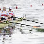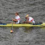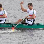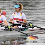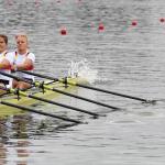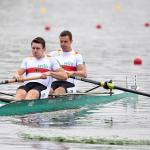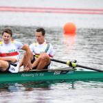 Für Stephan Riemekasten (Rudergemeinschaft Rotation Berlin) und Max Appel (Sportclub Magdeburg e.V. Abteilung Rudern) im Männer-Doppelzweier ging es heute um den erhofften Finaleinzug – Platz eins bis drei qualifiziert sich für die Endrunde. Mit einem Sprintstart setzte sich das deutsche Duo an die Spitze des Feldes und überquerte die erste Zeitmessung fast zeitgleich mit den Briten. Auf den zweiten 500 m mussten die Jungs von Trainer Dirk Brockmann dem hohen Anfangstempo etwas Tribut zollen, als Vierter mit knapp zwei Sekunden Rückstand auf das führende Boot gingen sie auf die zweite Streckenhälfte. Dort war den beiden anzumerken, dass ihnen gemeinsame Trainingskilometer fehlen, sitzen sie doch erst 12 Trainingstage gemeinsam im Boot. Am Ende überquerten sie als Fünfter die Ziellinie und stehen damit morgen im B-Finale. „Natürlich ist die Enttäuschung jetzt etwas größer, wir hätten uns gerne für das Finale qualifiziert. Aber wir sind ein junges Team, da muss man auch realistisch bleiben. Wir wollten heute möglichst lange vorne bleiben, das ist uns nicht so gut gelungen, aber wir haben ihnen das Leben nicht leicht gemacht. Das Rennen morgen werden wir genießen und versuchen, ein gutes Ergebnis rauszuholen“, so Stephan Riemekasten.