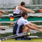 Nach Silber für Tim-Ole Naske (Ruder-Gesellschaft 'Hansa' e.V.) und Bronze für Oliver Zeidler (Donau-Ruder-Club Ingolstadt e.V.) blickt die gesamte Ruderwelt gespannt auf das deutsche Duell im Männer-Einer. Beide Deutschen haben sich mit einem Vorlaufsieg sovuerän für das Viertelfinale am Nachmittag qualifiziert. Den Auftakt aus deutscher Sicht machte dort Oliver Zeidler, der zu Beginn nicht gut ins Rennen fand, auf den zweiten 500 m aber die Schlagzahl erhöhte und sich an Position zwei hinter den Polen schob. Kurz vor dem Ziel zog der Newcomer wie schon im Vorlauf einen starken Endspurt an und qualifizierte sich als Erster für das Halbfinale. "Ich bin einfach vorne mitgefahren, weil ich wusste, was ich hinten noch mit dem Enduspurt rausholen kann. Langsam bekomme ich dann auch die Erfahrung", so Zeidler. Im zweiten Rennen mit deutscher Beteiligung führte Tim Ole Naske das Feld vom Start weg an. Auf Höhe der 1.000-m-Marke zog dann aber der Tscheche und Sieger von Belgrad, Ondrej Synek, am Hamburger vorbei und ruderte den Sieg ins Ziel. Auf den letzten Metern ließ Tole auch noch den Neuseeländer ziehen, aber mit Platz drei hat er sich sicher für die Runde der letzten 12 qualifiziert.