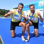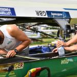 Für den leichten Männer-Doppelzweier hingegen war es ein Rennen nach Maß. Auf den ersten 1.000 m versuchten Konstantin Steinhübel (Akademischer Ruderclub Würzburg e.V.) und Jonathan Rommelmann (Crefelder Ruder-Club 1883 e.V.) in ihr Rennen zu finden und lagen noch auf dem fünften Rang. Ab dann lief es richtig – die Jungs von Karsten Timm erhöhten die Schlagzahl und schoben sich Meter für Meter nach vorne, ein spannender Dreikampf um die beiden direkten Finaltickets entwickelte sich. Mit nicht mal zwei Zehntel Vorsprung siegte das deutsche Duo vor dem Boot aus Frankreich und den Kanadiern. „Wir haben die ersten 1000 m genutzt, um ins Rennen reinzufinden, ab dann lief es super Wir haben den Kopf zu gemacht und einfach alles probiert. Das sah natürlich nicht richtig schön aus, aber es hat gereicht“, so Konstantin Steinhübel. „ Aber wir sind super zufrieden mit dem Rennen, wir haben viel probiert und gelernt. Selbst wenn es heute nicht gereicht hätte, könnten wir richtig zufrieden sein.“