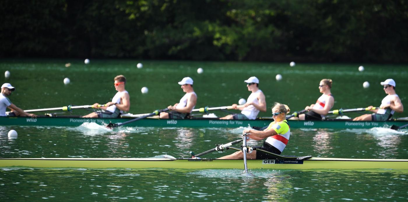 Nachdem der Deutschland-Achter in Linz noch in den Hoffnungslauf musste, wollten die Jungs von Bundestrainer Uwe Bender heute direkt das Finale klar machen – mit Erfolg. Obwohl die Lautsprecher ausfielen und die Kommandos von Steuermann Martin Sauer bei der Crew nicht ankamen, ließen sich Johannes Weißenfeld (Ruderclub 'Westfalen' 1929 e.V. Herdecke), Felix Wimberger (Passauer Ruderverein von 1874 e.V.), Maximilian Planer (Bernburger Ruderclub e.V.), Torben Johannesen (Ruder-Club Favorite Hammonia), Jakob Schneider (Ruderklub am Baldeneysee e.V.), Malte Jakschik (Ruderverein Rauxel von 1922 e.V.), Richard Schmidt (Ruderverein 'Treviris 1921' e.V.) und Schlagmann Hannes Ocik (Schweriner Rudergesellschaft von 1874/75 e.V.) nicht aus der Ruhe bringen. Mit einem souveränen Start-Ziel-Sieg zogen sie ins Finale ein. Die Chancen auf das Triple im Weltcup stehen gut. „Obwohl es ein Rennen ohne Kommandos war, war es ein gutes Rennen. Wir haben umgesetzt, was wir uns vorgenommen hatten. Wir sind schnell losgefahren und haben dann verwaltet“, so der jüngste im Team, Torben Johannesen. Uwe Bender war ebenfalls beeindruckt. „Es ist das erste Mal, dass unsere Lautsprecher im Rennen ausgefallen sind, dafür haben die Jungs das wirklich gut gelöst. Ein Steuermann lenkt ja nicht nur, er gibt auch wichtige Anweisungen.“
