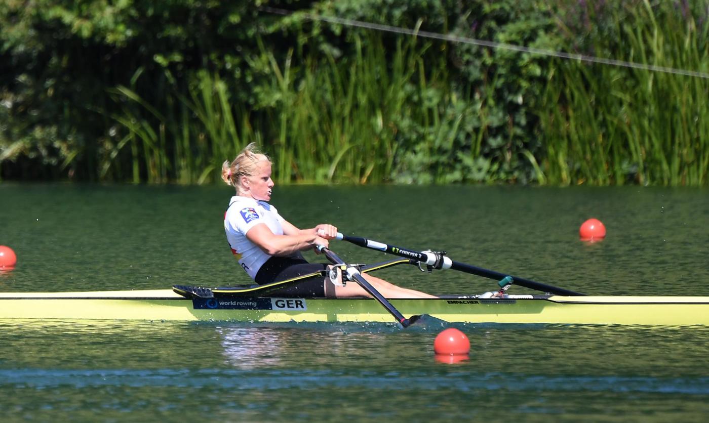 Bei den Athletinnen im Frauen-Einer qualifizierte sich nur die Vorlaufschnellste direkt für das Halbfinale, alle anderen mussten am Nachmittag im Hoffnungslauf noch einmal ran. Sowohl Annekatrin Thiele (SC DHfK Leipzig e.V. Abtlg. Rudern) als Zweite und Julia Leiding (Rostocker Ruder-Club von 1885 e.V.) als Dritte ihres Laufes mussten diesen Umweg gehen. Dort konnte sich Annekatrin Thiele wie gewohnt vom Start weg an die Spitze des Feldes setzen und dieses bis ins Ziel dominieren. Nicht gereicht hat es hingegen für Julia Leiding, die mit ihrem dritten Platz das Halbfinale nur knapp verpasst hat. Für die Rostockerin geht es dann im C-Finale um eine gute Platzierung. "Das war erstmal ok. Ich bin vorne gut rausgefahren und konnte das Rennen dann kontrolliert zu Ende rudern - so wie es die Aufgabe war.