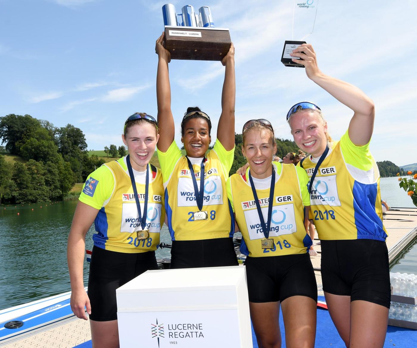 Nach der knapp verpassten Bronzemedaille in Linz möchte der Frauen-Vierer ohne auch in Luzern wieder ins Finale. Sophie Oksche (Donau-Ruder-Club Ingolstadt e.V.), Frauke Hacker (Olympischer Ruder-Club Rostock von 1956 e.V.), Alexandra Höffgen (Neusser Ruderverein e.V.) und Ida Kruse (Ruderverein Münster von 1882 e.V.) fanden in ihrem Vorlauf aber nicht richtig ins Rennen und müssen als Vierte morgen im Hoffnungslauf noch einmal ran. „Das war eines der Rennen, das nicht so gut gelaufen ist. Die Mädels haben zu viel gewollt und nicht den richtigen Rhythmus gefunden“, erklärt Bundestrainer Werner Nowak. „Luzern ist eine andere Nummer als Linz. Einige Nationen sind nicht am Start, neue sind hinzugekommen.“