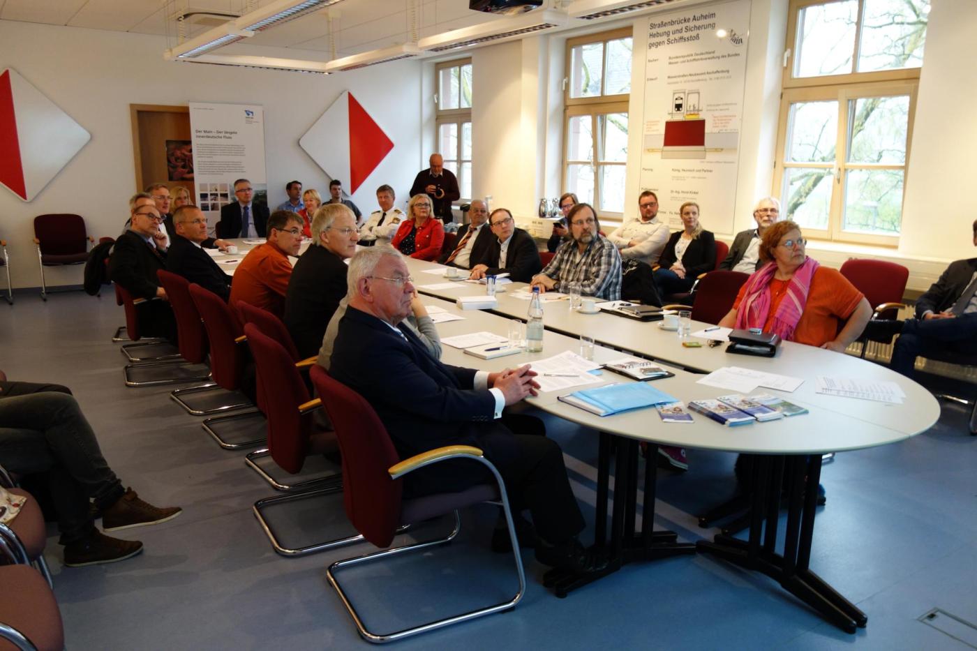 Rund 30 Mitglieder des Ruder-, Kanu- und Motoryachtsverbands nutzen ebenso wie Politiker und Behördenvertreter die Chance, sich detailliert über das Bauvorhaben zu informieren. Seitens des Deutschen Ruderverbandes waren Michael Stoffels, Vorsitzender des Fachressorts Ruderreviere, Umwelt und Technik, sowie Ressortmitglied und Organisator des Treffens, Ludwig Martin Büttner, anwesend.