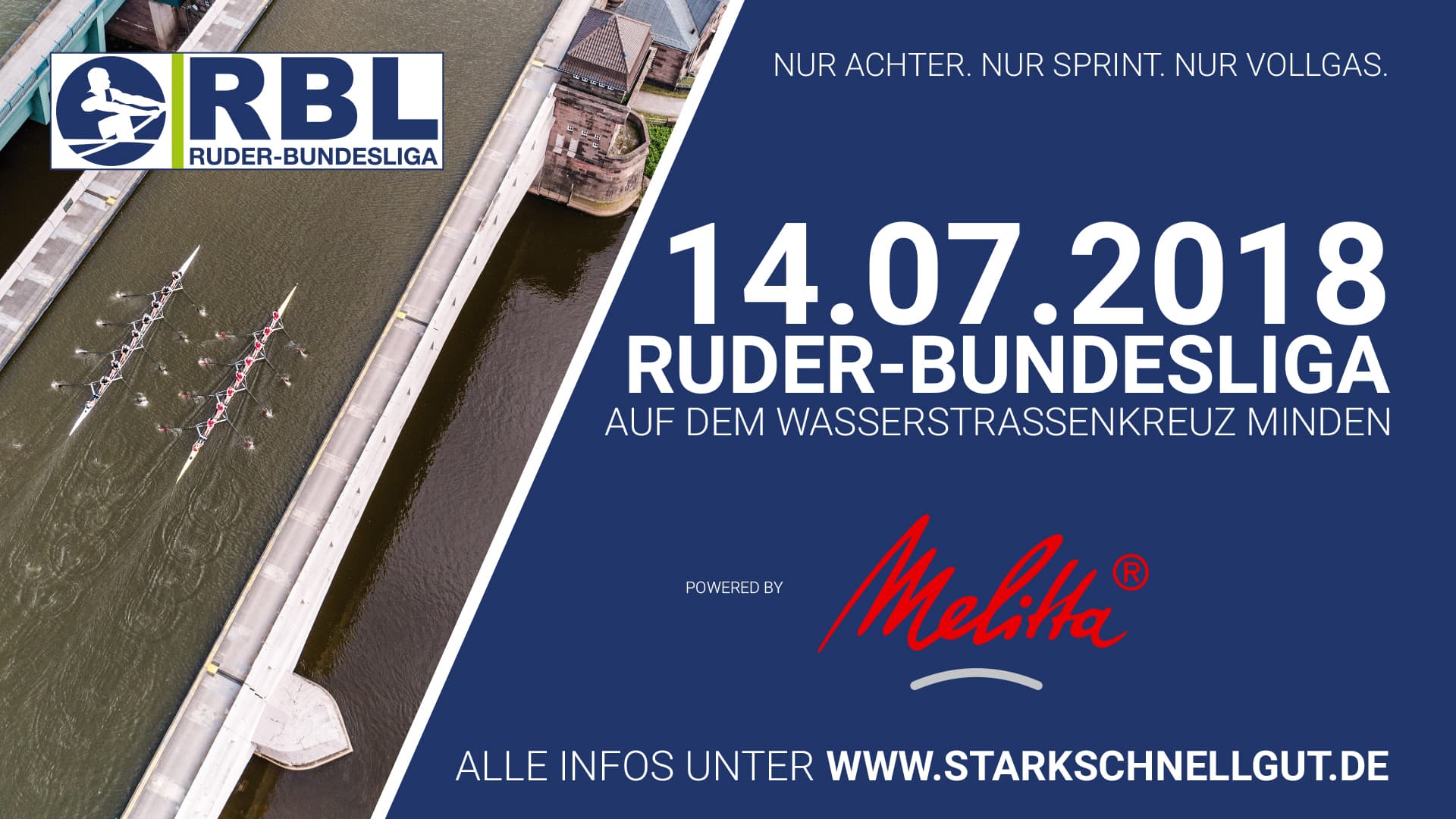 Die Ruder-Bundesliga fiebert am kommenden Samstag, den 14. Juli im ostwestfälischen Minden einem weiteren spektakulären Renntag entgegen. Die stärkste Sprintliga der Welt gastiert am Wasserstraßenkreuz. Dort wo zwei Wasserstraßen sich treffen, wird der Mittellandkanal in einer Trogbrücke über das Wesertal und die rund 13 Meter tiefer gelegene Weser geführt. Auf dieser 390 Meter langen Brücke findet der 3. Renntag dieser Saison statt. Unter dem Motto: „Näher dran geht nicht!“ rudern jeweils zwei Achtermannschaften auf der 24 Meter breiten Wasserfläche gegeneinander. Nur bei der weltberühmten “Henley Royal Regatta“ in England ist die Bahnbreite mit 12 Metern genauso schmal. Die Zuschauer stehen direkt hautnah auf der rund 1 Meter hohen Kaimauer daneben und feuern ihre Teams an. Nervenkitzel und Hochspannung ist also garantiert.